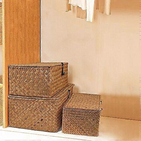 Type de produit: BASKET , Marque: LIOOBO Parfait comme organiseur de maquillage, rangement de salle de bain ou porte-linge, sa conception polyvalente s'harmonise avec n'importe quelle configuration de... Panier De Rangement En Rotin Avec Couvercle, Boîte à Bijoux Tissée à La Main, Organisateur De Maquillage En Osier, Conteneur Alimentaire, Boîtes De Panier Rangement Jardiniere-bac a fleur,Pot de fleur en paille tissée,jardinière de