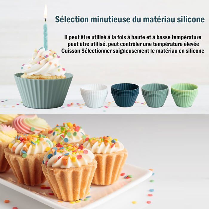 S, des muffins, des cupcakes, des brownies, des cheesecakes, des gâteaux de fées, des bols à collation, des glaces et plus encore. Moule Cupcake Lot Moulle Silicone Patisserie Moules Muffins Silicone Lékué - Lot Moule Silicone Air Fryer Les possibilités sont infinies : muffins moelleux aux myrtilles, cupcakes décadents au chocolat, muffins salés aux herbes fines pour vos apéritifs dinatoires les plus raffinés, et bien plus encore ! Contenu de l'emballage : Nos 12 moule muffins silicone dans une variété de couleurs différentes. Chaque ensemble se compose de 4 couleurs pour aider à différencier les gâteaux pour différentes saveurs et utilisations multiples.Moule silicone patisserie: Pour un usage quotidien, nos moules à gâteaux en silicone sont facilement amovibles Haute qualité : Moule cupcake fabriquées en silicone de qualité alimentaire sans bpa, antidérapantes, résistantes aux chocs et imperméables. Accessoire Pâtisserie Four Lot De 12 Moules à Muffins En Silicone Produit:Moule Muffins SiliconeQuantité : 12 piècesTaille: 6,6*3,2*4,2 cmMatériel: siliconeContenu de l'emballage : Nos 12 moule muffins silicone dans une variété de couleurs différentes. Lot de 12 caissettes muffins en silicone contenant 3 coloris différents pour une table égayée Préparez de délicieux muffins sucrés ou salés ainsi que des cupcakes dans ces superbes moules à muffins Silicone Rouge, gris, rouge clair 4,2 x 7 x 3,2 cm Four jusqu'à 230°C Congélateur jusqu'à -40°C Lave-vaisselle Lot de 12 moules à muffins en siliconeEntrez dans un monde de délices sucrés et salés avec les magnifiques caissettes muffins et cupcakes en silicone de Dr. Large application : Les moule cupcake pour cuire des œU. Alors, lancez-vous dans l'aventure culinaire avec ces caissettes muffins et cupcakes en silicone de Dr. Oetker, votre complice culinaire incontournable ! La résistance de ces moules est tout simplement incroyable : ils peuvent supporter des températures allant jusqu'à 230°C au four, vous permettant ainsi de réaliser des pâtisseries dorées et croustillantes à souhait. Moule silicone patisserie: Pour un usage quotidien, nos moules à gâteaux en silicone sont facilement amovibles. Chaque ensemble se compose de 4 couleurs pour aider à différencier les gâteaux pour différentes saveurs et utilisations multiples. Taille compacte (7,1 x 7,1 cm) pour un rangement facile et un gain de place · Vente en gros disponible pour un achat en vrac pratique · Design léger (96 g/125 g... Ils passent au micro-ondes, au four, au réfrigérateur, au congélateur et au lave-vaisselle. Grâce à ces moules individuels en silicone, chaque convive peut désormais choisir son muffin personnalisé, adapté à ses envies les plus gourmandes !