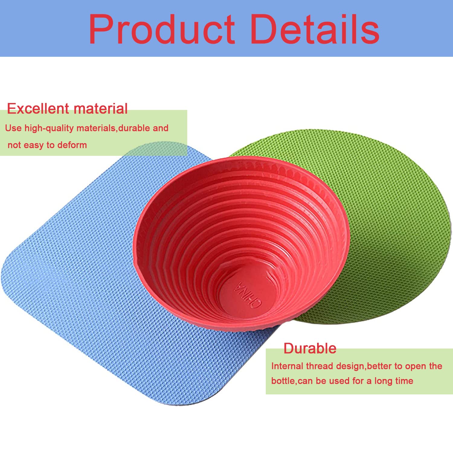 Lot De 4 Ouvre-Bocaux Manuels - Facile à Utiliser Pour Personnes G 1090590 Caractéristiques : 1., Caoutchouc de haute qualité, doux et confortable, pas facile à déformer, facile à nettoyer, peut être longue durée de vie., 2., Design antidérapant qui augmente la friction entre le bouchon et la bouteille, ne glisse pas facilement, facile à ouvrir le capuchon., 3., Couleurs vives, ajoutez de la couleur à votre intérieur. Caractéristiques : Matériau : caoutchouc., Taille ronde : 12,5 cm. Assurance qualité : BokWin s'engage à fournir des articles bon marché et gais aux clients. Lot De 4 Pinces En Caoutchouc Pour Ouvre-bocaux Matériau : décapsuleur est fabriqué en caoutchouc, doux et confortable, pas facile à déformer, facile à nettoyer, peut être longue durée de vie. 2 ronds verts mesurant environ 12,5 cm et 2 carrés bleus mesurant environ 12,7 cm. Quatre couleurs différentes peuvent également ajouter de la couleur à votre cuisine. Nous continuerons d'améliorer nos produits et services pour vous apporter une expérience d'achat de haute qualité. BokWin s'engage à fournir des articles bon marché et gais aux clients. Plus jamais de bocaux impossibles à ouvrir ! Ces 4 ouvres-bocaux en caoutchouc offrent une prise antidérapante parfaite pour desserrer les couvercles... Utilisation multifonctionnelle, peut être utilisé comme décapsuleur, peut également être utilisé comme tapis d'isolation thermique ou dessous de verre., 4., Très sympathique pour les enfants, ou les personnes âgées souffrant d'arthrite et de mains faibles.