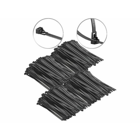 Pack de colliers de serrage 7,6 mm, par AGT 100 colliers de serrage réutilisables, coloris noir - 150 x 7,6 mm... Collier de serrage AGT : 100 colliers de serrage Pour garage, atelier, ménage, jardin, voyages Collier Serflex Collier De Serrage Réutilisable Collier Pour Serrage Réutilisable Rangez vos câbles sans les emmêler, attachez vos guirlandes ou fils pour les empêcher de traîner, attachez les fermetures à glissière de vos sacs, etc. Avec ces attache-câbles en 4 tailles différentes, les possibilités d'utilisation sont infinies ) Utilisables à des températures entre 85 - -40 °C Difficilement inflammables, ignifuges UL 94 V-2 Composition : polyamide 6., 6 Dimensions : 250 x 7,6 mm, poids total : 550 g, Utilisation universelle Pour fixer, sécuriser, attacher et réparer