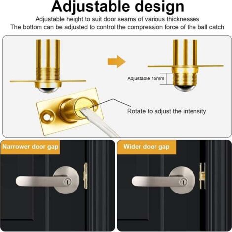 Le loquet à boule de porte de placard est généralement utilisé sur les portes invisibles où un loquet n'est pas utilisé ou nécessaire. Loquets de porte à bille à ressort – Durables et réglables Loquet de porte à billes pour porte intérieure, 1 loquet à bille réglable à ressort pour placard, haut de porte, 8 mm de diamètre · 8mm Diameter. €7.16€7.16... ✔️Matériau de haute qualité : structure en acier inoxydable massif, ressort lourd et ingénierie de précision rendent ce loquet de but extrêmement durable, antirouille et durable Contenu de l'emballage : 1 loquet de porte., 4 vis., Remarque : 1., La couleur réelle de l'article peut être légèrement différente de celle des photos présentées sur le site Web en raison de nombreux facteurs tels que la luminosité de votre écran et la luminosité., 2., Les mesures étant prises à la main, les tailles indiquées peuvent varier légèrement. *Tension de la boule réglable : double réglage du loquet de porte à roulement à billes pour une tension forte parfaite pour s'adapter à la quantité exacte de maintien dont vous avez besoin dans toutes les situations. Caractéristiques : Matériau : acier inoxydable., Couleur : argenté. ✔️Tension de la boule réglable : loquet de porte à roulement à billes à double réglage pour une tension forte parfaite pour s'adapter à la quantité exacte de maintien dont vous avez besoin dans toutes les situations. * Largement utilisé pour maintenir les portes sans loquet fermé, telles que les portes battantes, les portes de placard doubles ou pour les portes françaises. ✔️La gâche est montée sur le montant de la porte où la boule à ressort attrape et maintient la porte fermée. Caractéristiques : - Verrou de sécurité : ce verrou à bille est spécialement conçu pour fournir une sécurité accrue, gardant vos portes fermées en toute sécurité - Taille : 5,50 x 3 x 3 cm - Loquet de porte réglable à boule - Mécanisme de boule supérieur pratique Loquet De Porte Interne Réglable En Acier Inoxydable Largement utilisé pour maintenir les portes sans loquet fermé, telles que les portes battantes, les portes de placard doubles ou les portes françaises.