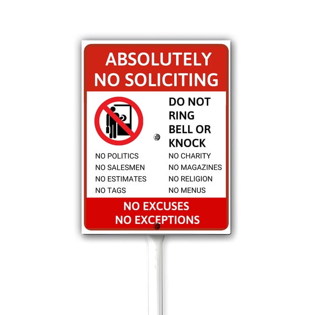 Ce panneau est fabriqué en aluminium robuste et résistant à la rouille, et peut rester dans son état d'origine même après des années d'utilisation en intérieur ou en extérieur. Le panneau a des coins arrondis et des coins sans bavure pour un fonctionnement sûr Fabriqué en aluminium de qualité supérieure, ce panneau est sans rouille et résistant aux intempéries, garantissant des performances durables dans diverses... Diamètre du trou : environ 0,3 cm. Matériau : nous utilisons des matériaux de première classe pour fabriquer nos panneaux. Offre une bonne visibilité. Couleur : conforme à l'image. Imperméable, non éblouissant, nettoyage simple et ne décolore pas. Que vous les placiez au centre ou que vous choisissiez un endroit qui exprime votre voix, ces panneaux ajouteront du caractère et du style. Fabriqué en aluminium résistant à la rouille. Panneau d'interdiction de sollicitation pour maison et cour, panneau en métal avec piquet, panneau Sticker For Door BTFLFDR Panneau En Aluminium Avec Inscription « Solicitors Knock At Your Own Risk » 20,3 X 30,5 Cm Sign Law Design créatif, contracté, tendance.