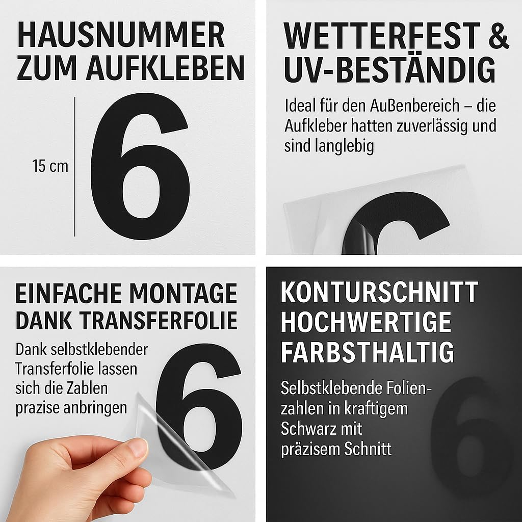 Le film utilisé est résistant à l'eau et aux intempéries. Les autocollants sont découpés dans un film de qualité supérieure. Celui-ci est retiré après le collage. Résistant à l'eau et aux intempéries., Couleurs résistantes. Nos autocollants ont les caractéristiques suivantes : Résistant aux UV. Cela vous permet de coller les autocollants facilement et avec précision. Comme par exemple pour les numéros de maison, les vitrines, les dossards, les boîtes aux lettres, les cadeaux, les calendriers, les vitrines, les bateaux, les voitures, les murs, les panneaux, les décorations et bien plus encore., ⚠️ Activez la boîte aux lettres d'archivage et l'expansion automatique des Un film de montage transparent est déjà appliqué. Peut être appliqué sur presque toutes les surfaces lisses et non grasses. Numero Autocollant Chiffre Autocollants Chiffres Vinyle Autocollants Chiffres 2-50cm - PVC Résistant UV Pour Porte, Boîte Aux Lettres, Bateau Autocollants Surfaces Lisses Chiffre De Maison Autocollant Vous pouvez coller les autocollants sur différents matériaux. Plus de marchandises en vrac qui ne collent plus correctement., ⚠️ Vous recevrez des autocollants rouges. Idéal pour poubelles, numéros de maison, armoires, véhicules, vitrines, fenêtres, etc. Nos autocollants sont toujours fraîchement produits. La surface de pose doit être propre et exempte de graisse., ⚠️ Nos traceurs de découpe découpent les chiffres avec précision au millimètre. Avertissement De Sûreté aucun Nos autocollants peuvent être utilisés pour différentes applications. Idéal pour la signalétique, la décoration, le marquage ou l'adressage, ce lot de 177 chiffres (2, 3, 4, 5, 6) d'une hauteur de 20 mm est résistant aux... Pochette de 80 grands chiffres adhésifs, hauteur du numéro 15 cm. - Livré en rouleau. - Cette Planche de chiffres adhésifs est idéale pour préparer vous même votre lettrage adhésif à l'intérieur comme pour l'extérieur Grâce au film de transfert transparent, vous pouvez voir exactement où vous placez l'autocollant., ⚠️ Les lettres sont toutes livrées sans arrière-plan sur un film de transfert transparent.