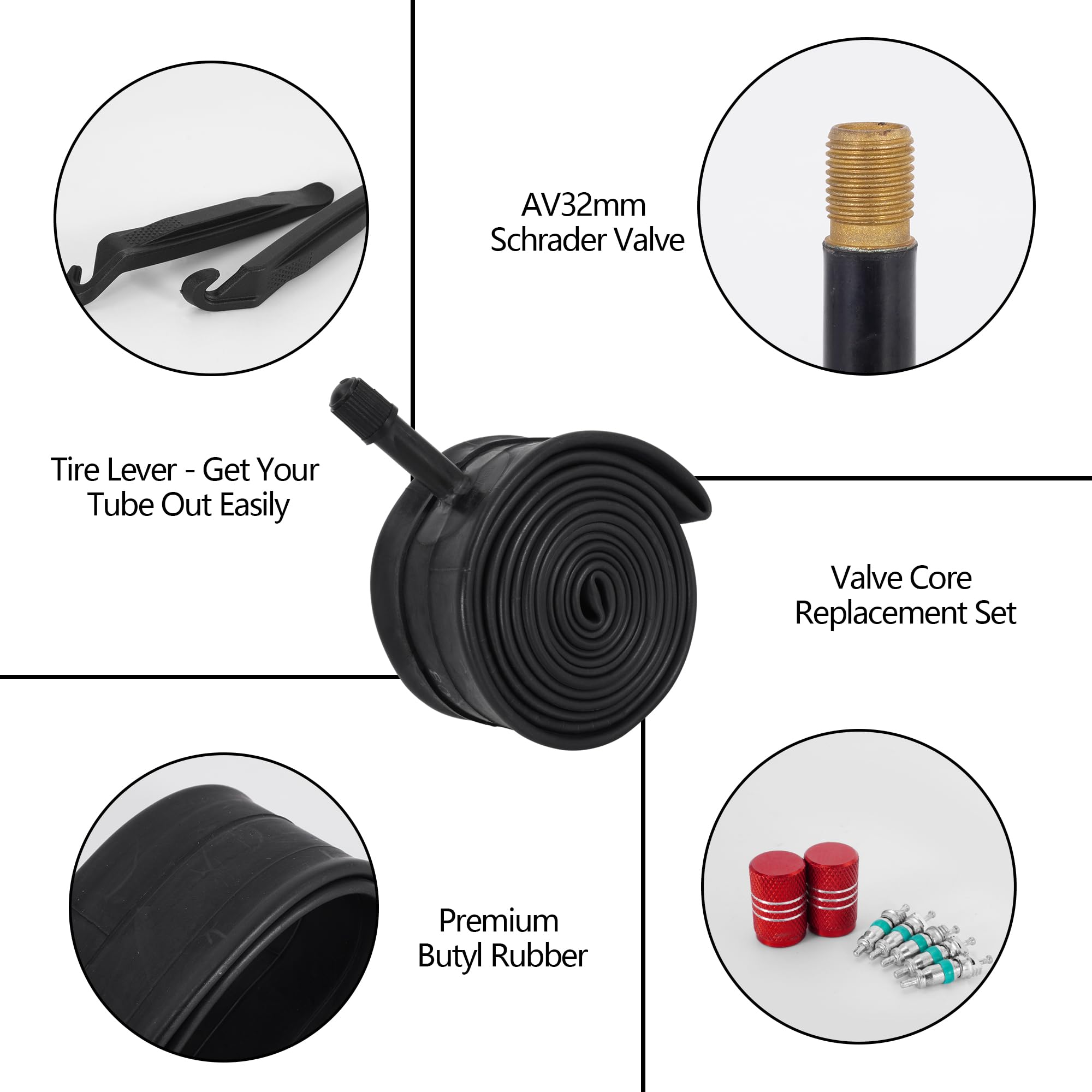 【50,8 x 4,4 à 5,4 cm】La chambre à air de vélo s'adapte à la plupart des vélos pour enfants avec des pneus de 50,8 cm qui mesurent entre 4,4 cm et 5,4 cm de large. Chambre à air de vélo de 50,8 cm pour roues de 50,8 cm avec une largeur comprise entre 4,4 cm et 5,4 cm Chambre A Air 18x8.50-8 FengCan 18 Pouces Enfant Chambre à Air 18x1.75/2.125 45/57-355 Inner Velo Enfant 18 Pouces Principaux points forts · Marque. Gesinikad · Type de soupape. Schrader · Matériau. Caoutchouc butyle · Taille de roue. 20 Pouces · Diamètre de l'article. 20 Pouces Évitez d'utiliser des outils tranchants pour empêcher les outils de couper le tube intérieur. Lot De 2 Chambres à Air De Vélo Robustes De 50,8 Cm, Valve AV32 Mm (50,8 x 4,4 cm, 50,8 x 4,9 cm, 50,8 x 5,3 cm, 50,8 x 5,3 cm) pour valve Schrader de 32 mm. Conseil : le tube intérieur est enveloppé d'un film plastique. Nous sommes sûrs que vous aimerez notre chambre à air de 20 x 2,10., Si vous n'êtes pas satisfait, nous vous aiderons à résoudre votre problème ou à vous rembourser intégralement. Large application : la chambre à air s'adapte à la plupart des vélos pour enfants avec des pneus de 50,8 cm qui mesurent entre 4,4 cm et 5,5 cm de large. (50,8...