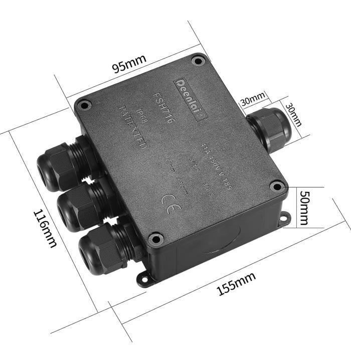 Panneaux d'affichage LED, tunnels LED, éclairage de paysages routiers LED, affichage extérieur LED, lumières de jardin, etc Boite De Raccordement étanche Boîte De Jonction étanche En Plastique IP68 M686 Boîte De Prise Exterieure Etanche Remarque : 2 voies avec 3 terminaux, 3-6 voies avec 4 terminaux. Description de l'article : Étanche IP68, elle peut être installée horizontalement et verticalement comme boîte de jonction externe pour cacher les connexions électriques autour de votre maison et de toute propriété. Performance étanche: IP68 classe étanche de haut niveau / étanche à l'humidité / à la poussière / anti-UV Terminal en plastique à 2 voies, il peut être installé horizontalement et verticalement en tant que boîte de jonction externe, adapté à une variété de connexions de fils intérieures et extérieures Contenu de l'emballage : 1 boîte de jonction étanche Le produit réel est le seul pouvant être considéré comme standard. Boîte de Jonction électrique étanche, Boîte de Jonction électrique... Remarque : - Les mesures étant prises à la main, les tailles indiquées peuvent varier légèrement. La boîte de jonction peut facilement être installée sous le sol, vous donnant une protection complète de la ligne de câble. Boite Jonction Etanche Boîte De Jonction étanche IP68, Boite De Derivation Etanche Exterieur, Boîtier De Connecteur De Câble 4 Voies Connexions Pour Câble 4mm-12mm | Leroy Merlin Boitier Derivation Etanche Exterieur Fabriqué en plastique de haute qualité, il ne se fissurera pas et ne se décolorera pas au soleil, durable et durable. - Selon la luminosité et les paramètres d'éclairage des écrans, la couleur réelle de l'article peut être légèrement différente de celle de la photo. Merci de votre compréhension. Tension nominale : 450 V, courant nominal : 24 A, matériau : plastique Il est applicable à la connexion de lampes d'extérieur et de lanternes.