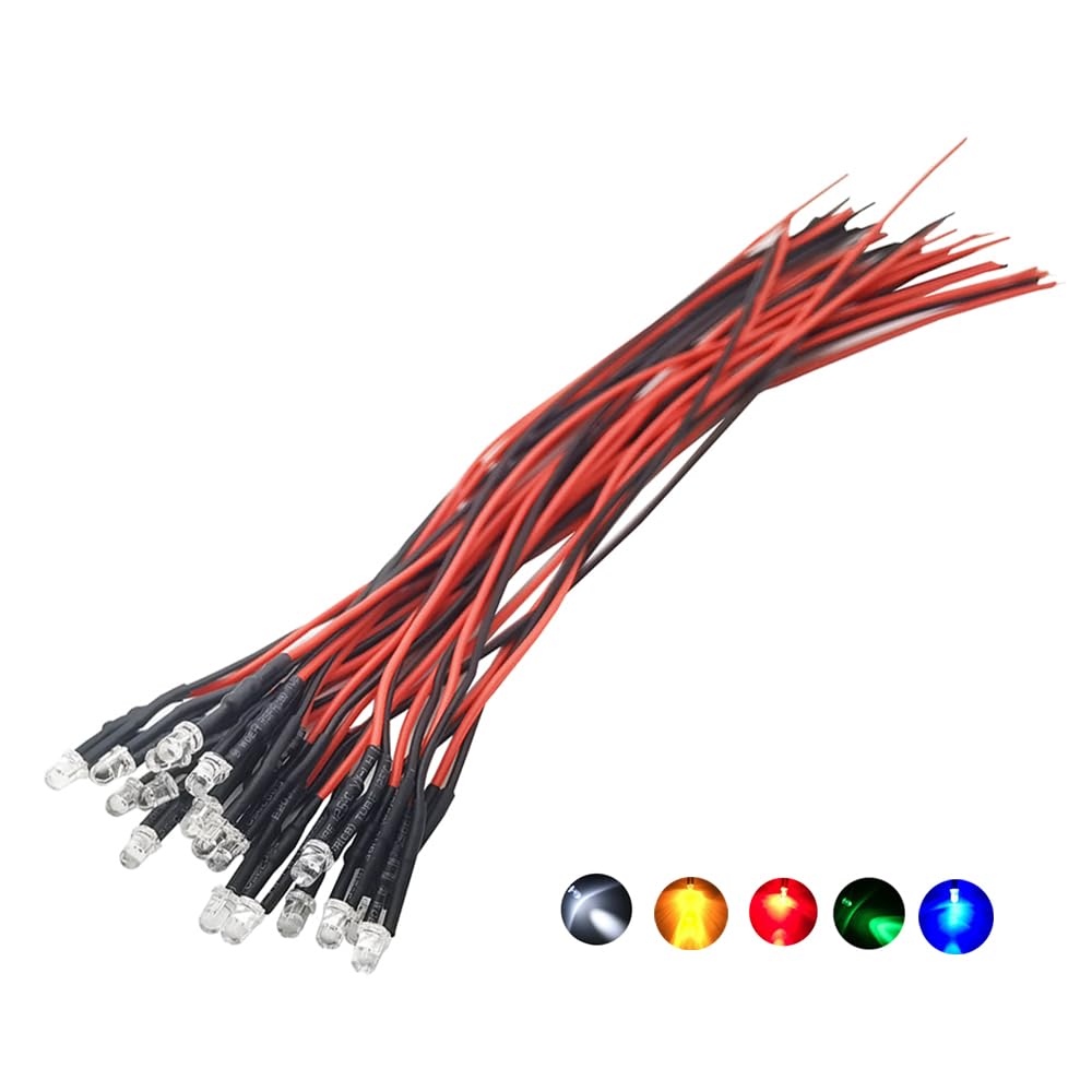 Caractéristiques : Courant de fonctionnement : 20 mA Tension de fonctionnement : Rouge : 1,9 V-2,1 V Jaune : 1,9 V-2,1 V Vert : 1,9 V-2,1 V Bleu : 3 V-3,2 V., Blanc : 3 V-3,2 V., MCD : Rouge : 600-800., Jaune : 600-800 Vert : 600-800 Bleu : 1000-1200., Blanc : 14000-16000., Longueur d'onde : Rouge : 620-625 Jaune : 590-592 Vert : 567-570 Bleu : 460-465., Blanc : température de couleur 8000 °C. Lentilles Couleur Jaune Assortiment De Diodes LED De 50 Pièces De 10 Mm, Diodes électroluminescentes Multicolores Individuelles, Blanc, Rouge, Vert, Bleu, Jaune, Ampoules Assorties (Couleur : Bleu Lentilles Couleur Rouge Poids du colis : 0,07 kg. EJ.life Assortiment de diodes 500 pièces LED Diodes 5mm Variété... Vrabocry Lot de 100 diodes LED oranges rondes transparentes de 5 Avec nos boîtiers de connecteurs à sertir de 0,1″, ces fils peuvent être utilisés pour fabriquer des câbles personnalisés avec 0,1″ (2,54 mm) de co Ampoule à diode électroluminescente LED, lampe ultra-lumineuse, 5... Micro 10 mm de diamètre, 2 broches 2 broches, petite lumière vive, basse tension et faible consommation d'énergie Paramètres : DC 2 V-3,2 V Volt 20 mA, polarité (2 V) : anode « + » (jambe plus longue) | cathode « - » (jambe plus courte), (couleur) ronde petite lentille