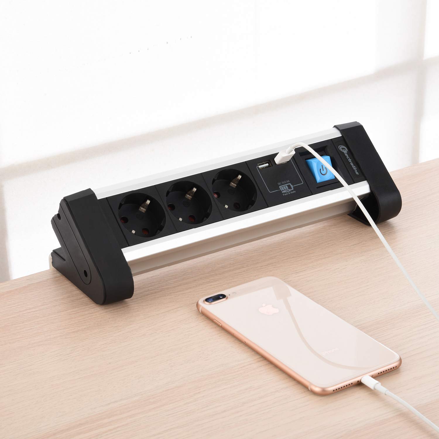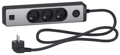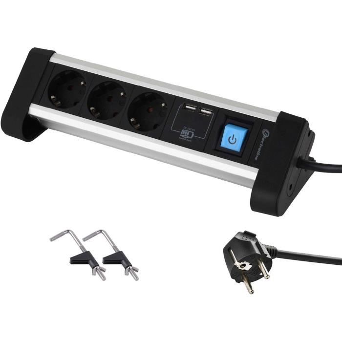 Multiprise 3 prises en aluminium pour bureau + 2 ports USB 2., 4 A, câble de 2 m. 3 prises Schuko ; 3 ports USB 3,4 A pour charger jusqu'à 2 appareils USB simultanément; interrupteur on/off. Cape 1,5 m, H05VV-F - 3G1,5 mm² Electraline 62553 Multiprise 3 prises en aluminium pour le bureau + 2 USB 2,4 A, câble 2 m/multiprise/prise de table/prise Schuko Fiche inclinée pour une connexion facile sans beaucoup d'effort , 2 m. La sécurité enfant assure une utilisation sans danger dans la maison Rallonge de 2 mètres. La protection anti-torsion à l'extrémité du câble empêche la rupture du câble. Indice de protection : IP20., Ligne en plastique: H05VV-F 3G1 5 Section de conducteur : 1., 5 mm²., Couleur : métal., Tension nominale : 250 V., Courant nominal : 16 A Utilisation : dans les salles de réunion, les bureaux, les hôtels, les locaux commerciaux, les cuisines, le travail intelligent. Produit de qualité supérieure avec câble épais et boîtier en plastique solide Multiprise Electraline 35438 Electraline 62556 Multiprise 3 Prises En Aluminium Pour Le Bureau Avec 2 Ports USB 65 W Multiprise Ordinateur Multiprise 3 prises en aluminium pour bureau Plus 2 USB 2. 4 A, câble de 2 m. Produit de qualité supérieure avec câble épais et boîtier en plastique solide... Aluiniu Prise de Courant de Bureau Encastrée USB C, Prise de Courant de Bureau Cachée Ohuo
