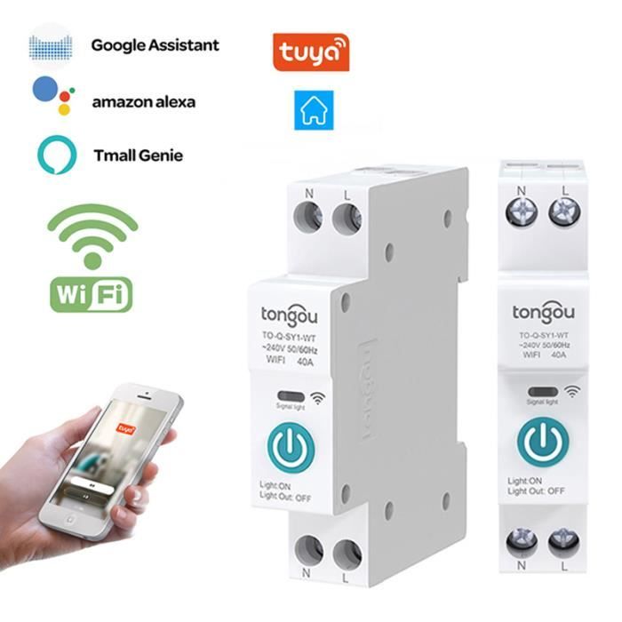 INTERRUPTEUR WIFI INTELLIGENT MCB pour disjoncteur Din Rail Tuya avec... Caractéristiques : Caractéristiques : Télécommande par téléphone portable pour TUYA Smart Edition Type de composant : TO-Q-SY1., Protocole : WiFi (par défaut) 2,4 GHz. Type de contrôle : télécommande, manuel. Compteur d'électricité intelligent TUYA avec compteur WIFI disjoncteur Domotique Maison Disjoncteur Intelligent WiFi Smart Time Timer Relais Commutateur Pour Culpa Tuya 1 manuel d'utilisation (français non garanti) *【Trois modes de minuterie】Mode minuterie/mode compte à rebours/synchronisation du cycle. *[Protection intelligente] Réglez l'état de l'interrupteur de l'appareil dans différents scénarios, et surveillez à distance la situation en temps réel des appareils électriques de charge. Contenu de l'emballage : 1 disjoncteur intelligent. Description des pôles : 1P+N (N Pole Pass-through). Protection intelligente] Réglez l'état de l'interrupteur de l'appareil dans différents scénarios, et surveillez à distance la situation en temps réel des... Plage de tension de fonctionnement nominale : 90 V-240 V.
