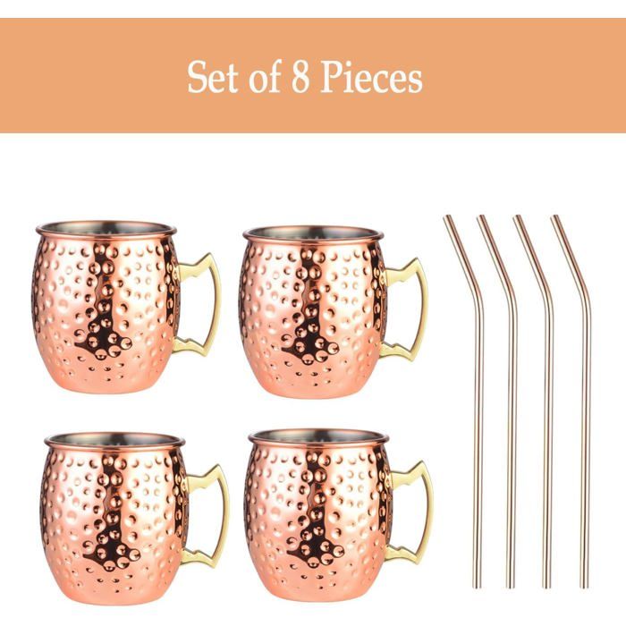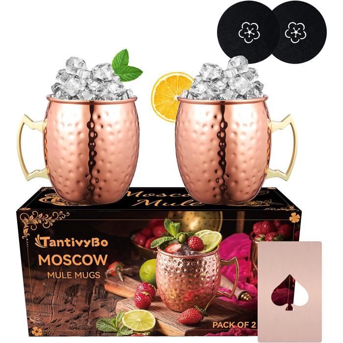 Kitchen Science Moscow Mule Lot de 12 tasses en cuivre (473,6 g) | Tasses en cuivre pur de qualité alimentaire | Fabriquées à la main avec finition martelée laquée, bord arrondi lisse, poignée ergonomique (rivet) avec poignée solide Moscow Mule SuproBarware Lot De 8 Tasses En Cuivre De 532 Ml En Acier Inoxydable Plaqué, Parfaites Pour Les Boissons Froides, Les Cocktails, Le Bar à La Maison, Avec Cadeau Verres à Cocktail Largement applicable : les tasses en cuivre Moscow Mule adoucissent les textures des boissons pour améliorer le whisky, les cocktails, et plus encore, offrant une expérience de boisson améliorée pour les réunions à domicile et les bars Voir plus de détails Signaler un problème avec ce produit Verre Cuivre Tasses Lot De 2 En Cuivre - 532 Ml - Acier Inoxydable - Pour Cocktails Et Boissons Fraîches Accessoire Bar Moscow Mule Parfait pour les cocktails, la bière et même le thé glacé · Conçu pour garder les boissons froides · Corps en cuivre massif martelé, doublé de nickel · Poignée en...