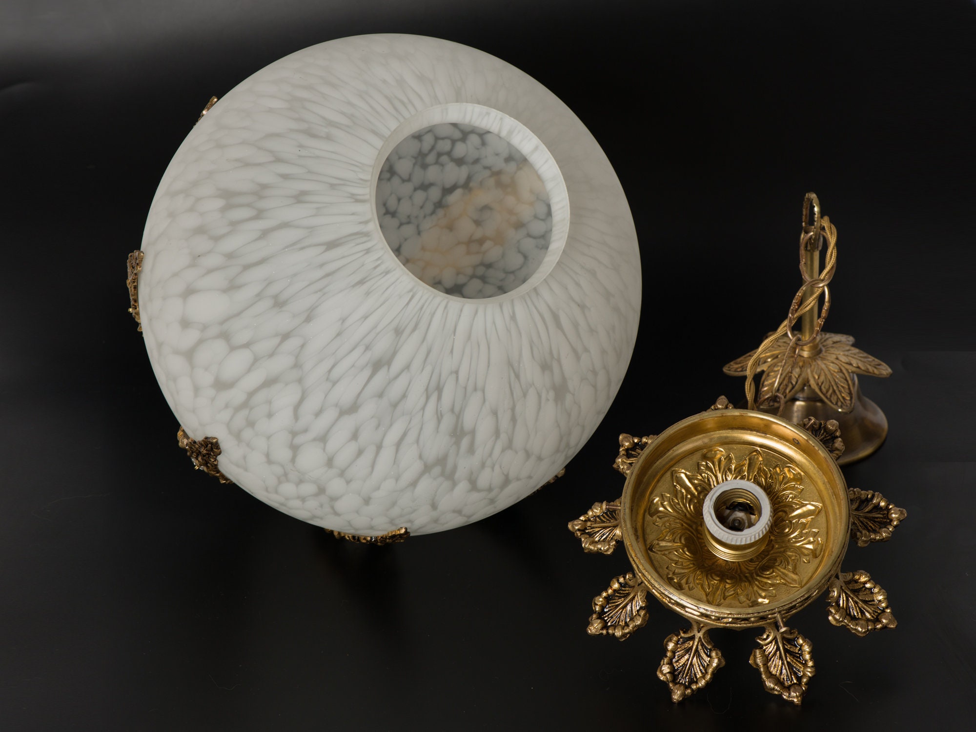 Abat-jour en verre cristal clair de haute qualité avec raccord en métal laiton brossé, durable et plein de style rétro., Livraison sans ampoule. Service après-vente : 1 an de garantie. Lampe Artisan 54 cm, laiton antique, avec abat-jour Parcourez notre sélection de lampe à suspension ancienne verre et laiton france : vous y trouverez les meilleures pièces uniques ou personnalisées de nos boutiques Le luminaire suspendu industriel vintage est parfait pour votre chambre, salon, îlot de cuisine, au-dessus de la table à manger, bar, club, etc. Lustre Verre Grande Suspension Atlas En Laiton, Avec Abat-jour En Verre Soufflé Luminaire Verre Culot d'ampoule E27, CA 110-240 V utilisable, max jusqu'à 60 W. Base de montage de 10 cm. Taille : globe en verre diamètre 20 cm, entonnoir en verre diamètre 17 cm x hauteur 19 cm. Une suspension avec un superbe globe en verre blanc « Splash » avec des détails en laiton et en cristal. Espagne vers 1050. Recommandé d'utiliser l'ampoule LED...