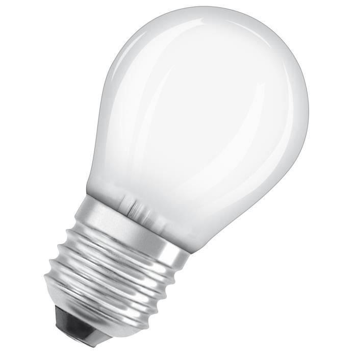 Avantages produits: Très basse consommation d'énergie. Contenu de la livraison: 1 x ampoule LED E27, 4 W, 220…240 V, Lumière du jour froide, 6500 K, 100% Sans mercure - Le meilleur de la qualité OSRAM. Contenu de la livraison: 1 x ampoule LED E27, 4 W, 220…240 V, Lumière du jour froide, 6500 K, 100% Sans mercure - Le meilleur de la qualité... Lumière blanc froid idéale pour améliorer la concentration et optimiser les performances visuelles dans la cuisine, la salle de bain et le bureau Consommation d'énergie 4 kWh/1000h à 470 lm Puissance thermique plus faible (par rapport au produit de référence standard). Utilisation extérieure uniquement dans des luminaires extérieurs (minimum IP65)., Applications domestiques. Allumage instantané, pas de temps de préchauffage . Conception, dimensions, flux lumineux comparables à une Ampoule à incandescence classique ou halogène. Longue durée de vie jusquà 15000 heures et 100000 cycles de commutation. Ampoule osram led e27 au meilleur prix | Leroy Merlin Ampoule Led Osram E27 OSRAM Lampe LED Multicolore LED PIN Avec Culot G9 Retrofit, 4,9 W / 806 Lm, Lumière Blanche Froide Claire De 4000 K, Non Dimmable, IP20, Verre Sans Plomb, Diamètre 18 Mm. En Ledvance Led Osram Succède aux ampoules classiques, se substitue à une ampoule de 40 W (utilisation en extérieur uniquement avec des luminaires appropriés)
