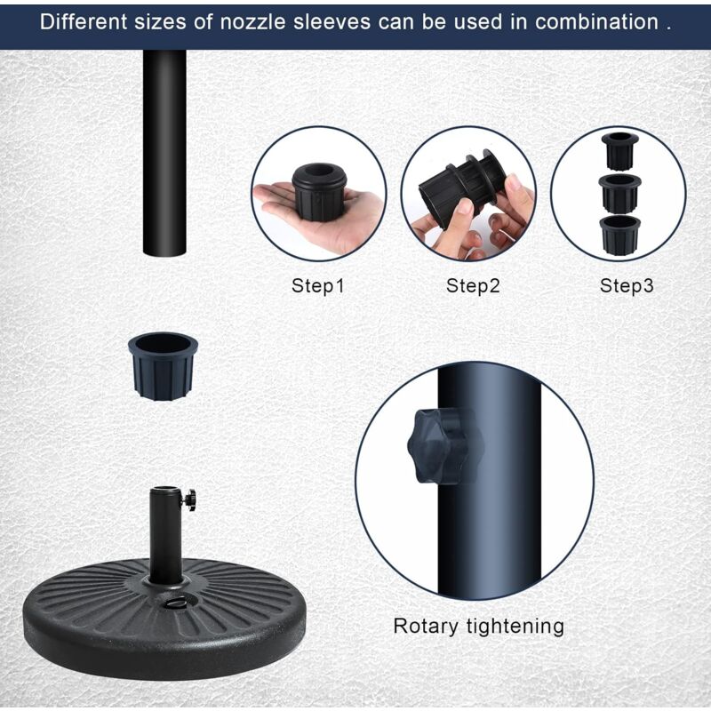 DBOO Lot de 2 anneaux de trou pour parasol de table de patio 5,1 cm Contenu : 2 anneaux de parapluie DBOO. Fonction décorative : aide à éviter les rayures et les bosses sur le mât du parasol causées par la friction avec la table de terrasse. Taille standard pour trou de parasol de table – Convient pour les poteaux de parasol avec un diamètre extérieur de 4,2 cm, l'anneau standard et le capuchon conviennent aux tables en verre ou en acrylique avec des trous de 5 cm. Balacoo Lot de 2 anneaux de housse de parasol de terrasse Relaxdays Table de jardin, avec trou pour parasol avec bouchon, aspect... Lot De 2 Anneaux De Trou Pour Parasol De 5,1 Cm Avec Bouchon Pour Matériau de qualité : l'anneau et le capuchon de parasol DBOO sont fabriqués en plastique souple de qualité pour garantir un assemblage facile. Lot de 2 anneaux pour parasol de table de patio pour stabiliser les parasols, réduire et éviter les rayures ou les bosses sur les mâts de parasol instables, largement utilisés dans les restaurants en plein air, les cafés, les patios à domicile, les bars, les salons de thé, la cour ou d'autres tables de terrasse en verre. Capuchon inclus qui complète l'apparence de la table lorsque le parapluie n'est pas en cours d'utilisation. Rappel : veuillez vérifier la taille du trou de votre table de patio avant l'achat. Facile à installer : il suffit d'insérer l'anneau dans le trou et de couvrir le trou avec le capuchon ou de l'installer avec le parapluie.