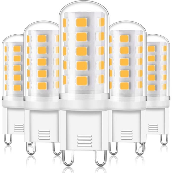 Intruduction de Détail - Ampoules de 5 x 3w led G9, ampoule standard avec douille G9, Veuillez bien vérifier les dimensions avant d'effectuer votre achat afin de vous assurer qu'elles sont bien adaptées à votre luminaire. Ampoules G9 PURSNIC G9 Lampe, Blanc Chaud 3000K, G9 LED 3W (33W Ampoule Led [ Super Dissipation de Chaleur]La version en céramique dissipe la chaleur de manière optimale, équipée de la nouvelle technologie de puce, ne sera pas endommagée par une utilisation prolongée, il s'agit des lampes à Led G9 idéales. ■ Lumière chaude et non éblouissante-Avec son design mat élégant et sa technologie LED innovante, cette lampe LED offre une lumière douce et confortable. Faible Consommation D'énergie, Faible émission De Chaleur, Jusqu'à 30000 Heures De Vie, Moins De Coûts D'entretien. La Lampe à économie D'énergie G9 LED... Si vous recevez des ampoules défectueuses ou avez des suggestions à propos de nos ampoules LED à culot G9, n'hésitez pas à contacter directement le vendeur. ■DétailsDouille:G9Consommation électrique: 3W= ampoule halogène 28W, 33W, 35W, 40W ou 45WPuissance lumineuse:400LMDimensions: D15., 5 xH51mmMatériel: Céramique Tension defonctionnement: AC220-240V 50 / 60HzAnglede rayonnement: 360 °Température decouleur: 3000K étanche DiCUNO Apoule LED G9 3W (Équivalent 40W Apoules Halogènes), 380L, Blanc chaud 2700K, AC100... [Éclairage Instantanén] Pas de temps d'attente pour chauffer à pleine luminosité lorsqu'il est allumé! Idéal pour l'éclairage général de vos pièces à vivre. YUIIP Lot de 83,5 ampoules LED G9 2 W Blanc chaud 3000 K Elles possèdent également une durée de vie de 30 000 heures et ne requièrent qu'un coût d'entretien très limité. Excellent blanc chaud pour le salon, la salle à manger, le bureau et le restaurant. [Large Application]Base G9 standard, facile à installer sur tous les luminaires G9., Convient pour l'éclairage intérieur, comme le lustre, les suspensions, la lumière du ventilateur de plafond, l'éclairage des fenêtres, les appliques murales, les lampes de bureau, etc. Économie D'énergie Et Meilleure Expérience D'éclairage - Remplacement idéal pour le remplacement de l'halogène traditionnel car cette petite LED 230V g9 consomme seulement 3W mais ne fait aucun compromis sur la luminosité et la qualité; puce IC + LED améliorée pour éviter le scintillement visuel ou l'éblouissement; il s'allume instantanément et s'éclaire en 0,5s, offrant une atmosphère lumineuse et vibrante. Elles pourront ainsi idéalement remplacer des ampoules halogènes et vous éviteront les dépenses coûteuses liées au remplacement fréquent de vos ampoules.