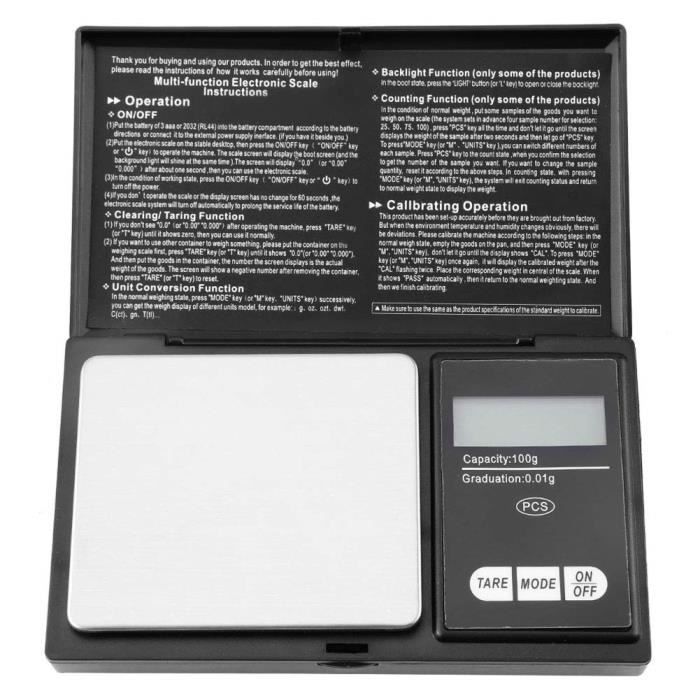 Affichage clair : affichage numérique à LED, les grands numéros de police sont clairement lisibles, idéal pour les personnes âgées et les personnes ayant une mauvaise vue. Mini balance de bijoux Balance électronique 1000g x 0.01g balance balance poche cuisine ménage électronique balance électronique. 8,71€. 28,71€. Ajouter au... Type B 200g 0.01g - clé de voiture Portable Mini balance de poche Haute précision : cette balance numérique utilise des capteurs de haute précision pour garantir une précision de mesure parfaite, vous permettant d'être plus précis avec la mesure du poids, pour les industries telles que la bijouterie. Mini Balance 0.01g Fdit Petite Balance à Bijoux Balance De Poche Numérique De Haute Précision, Portable, Fiable Pesette Gramme Vendu 13,57 €. Balance de Cuisine numérique, 1kg 0.01g Balance de Poche de... Grande plate-forme de pesée : la balance est spécialement conçue avec une grande plate-forme de pesée, adaptée pour placer des articles de différentes tailles, répondre à vos différents besoins de mesure et la rendre plus pratique et efficace. Utilisation sûre : la balance dispose d'une fonction d'arrêt automatique et d'alerte de batterie faible, et dispose également d'une fonction de protection contre les surcharges pour garantir la sécurité et la fiabilité de la mesure, afin que vous puissiez l'utiliser sans souci.