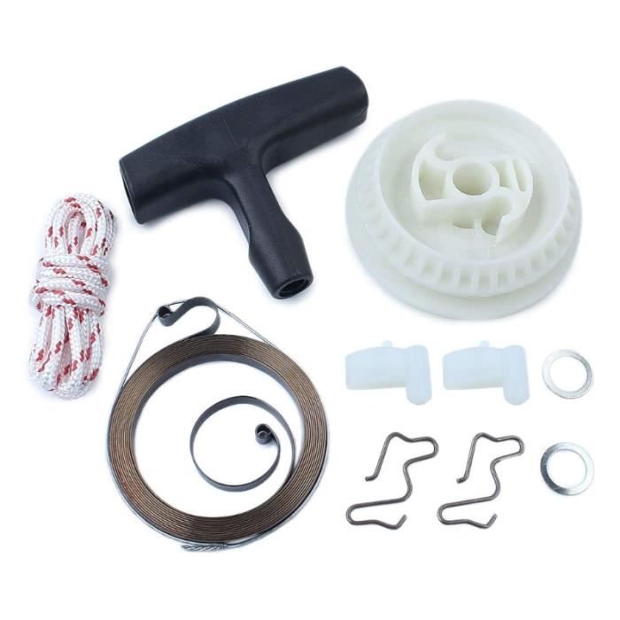 HRui Kit de cuerda de agarre de polea de resorte para 【CE QUE VOUS OBTENEZ】: 1 X poignée de démarrage, 2 X corde de démarrage, 1 X poulie de démarrage, 1 X ressort de démarrage, 2 X cliquet, 1 X ressort de rappel, 2 X joint d'huile 1 x poulie de démarrage, 1 x ressort de recul, 1 x corde de démarrage, 1 x kit de cliquet. DÉMARREUR CLIQUET RECUL Démarreur Poulie 039 029 Ressort Démarreur... Lanceur Tronconneuse Jeffergarden Kit De Ressort De Poulie De Démarreur à Recul Pour Poignée Lanceur Tondeuse 【REMARQUE】 : veuillez vous assurer que le numéro de pièce d'échange correspond à la pièce que vous remplacez.