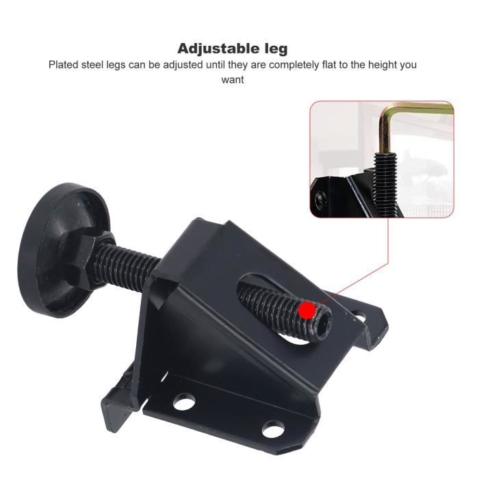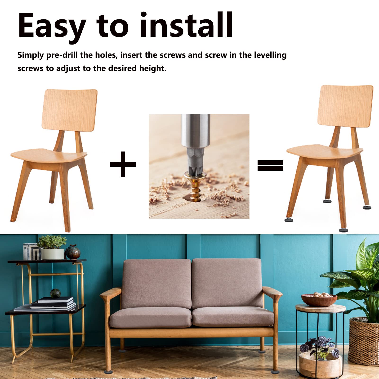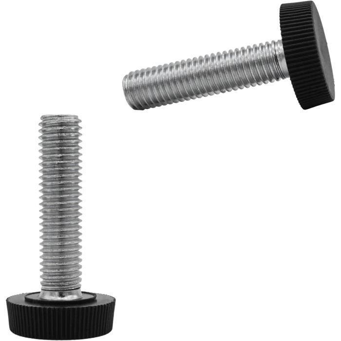 Réglage précis de la hauteur avec vis de réglage intégrées. Parfait pour les meubles de bureau et de maison. Le lot de 4 est facile à installer et à utiliser. Pieds de canapé - Ensemble de 4 - Réglables - Aluminium - Noir - 10 cm - Bricolage Emballage : 4 pieds de meubles M10 avec vis réglables. Fonction pratique : la base antidérapante protège votre sol des rayures et réduit le bruit. Les niveleurs de meubles M8/M10 aident à ajuster la hauteur et la stabilité des meubles.Base d'écrou en T robuste et boulon à vis 2 (50 mm) entièrement... Installation facile : percez des trous profonds avec une perceuse, frappez légèrement les écrous à emboîter avec un marteau, puis vissez les pieds de nivellement dans la bonne position. Les pieds de meubles peuvent également repousser l'humidité et équilibrer les meubles placés de manière inégale. Matériau de haute qualité : nos pieds de meubles ont une surface argentée brillante et sont fabriqués en fer durable et en nylon pour assurer la résistance, la résistance à la rouille et à la corrosion. Ils sont parfaits pour une utilisation dans la maison, sur la terrasse ou dans le jardin et peuvent rapidement et facilement résoudre le problème des meubles déséquilibrés. Fonction antidérapante : la vis de réglage M10 a une conception intime et antidérapante sur le fond avec de petites particules en relief sur le fond qui empêchent largement le glissement pendant l'utilisation et peuvent vous fournir une protection de sécurité Tampon Pour Chaise Tahikem Lot De 4 Pieds De Nivellement Réglables M10, Pieds De Nivellement Robustes Pour Meubles Avec Pieds Réglables Pour Meubles Avertissement De Sûreté Prenez soin de manipuler les composants métalliques et plastiques avec précaution, évitez de serrer excessivement les vis pour prévenir les dommages et assurez-vous que le meuble est stable après l'installation.