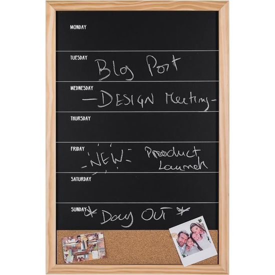Dessinez et communiquez avec style ! 60 x 45 cm Cadre en MDF Noyer Tableau à Craie Noir Bi-Office Optimum Tableaux et Ses lignes classiques en font un choix pour tout environnement La surface du tableau noir de haute qualité est parfaite pour planifier votre semaine ou vos menus Une bande de liège pour épingler des messages et des notes importantes Idéal pour les restaurants, les cafés, les boutiques et les espaces personnels La surface noire fonctionne... La surface noire fonctionne à merveille avec les craies classiques et les marqueurs à craie liquide Une bande de liège pour épingler des messages et des notes importantes Le planificateur hebdomadaire Combo offre la combinaison parfaite pour planifier et afficher des informations importantes. Il possède aussi une bande de liège qui vous permet d'épingler en toute sécurité des cartes, des notes ou d'autres informations partagées. La surface peut être facilement nettoyée avec un chiffon ou un effaceur à tableau Utilisez ce tableau noir à craie pour visualiser efficacement vos tâches hebdomadaires. Idéal pour les restaurants, les cafés, les boutiques et les espaces personnels Couleur. Cadre Blanc ; Matériau. Liège ; Usages recommandés pour le produit. Bureau ; Type de fixation. Montage mural ; Composants inclus. Craie, Marqueur Cadre Noir 40x60 Bi-Office - Tableau Noir Pour Craie Et Planificateur Combinés, 30 X 90 Tableau Blanc Cadre en MDF Blanc, robuste et attrayant