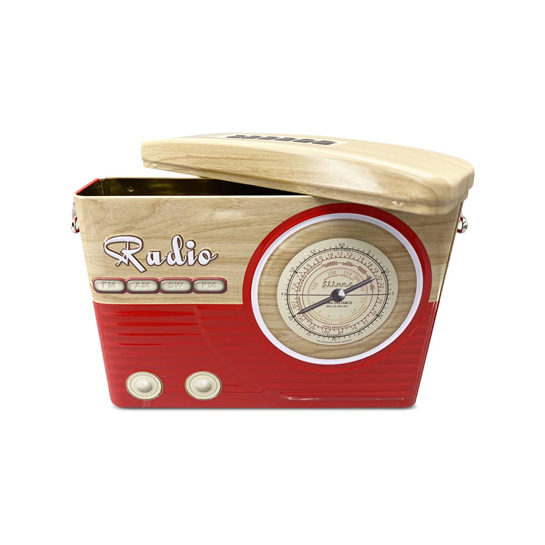 Boite à Biscuits Boîte Métal Rétro Radio Rouge - 21x17cm - Qualité Alimentaire Recette Camping