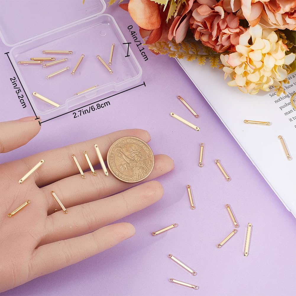 Beebeecraft Fabrication de bijoux en plaqué or Plaqué or véritable 18 carats, matériau hypoallergénique sans brillant, sans plomb et sans nickel, protège votre peau sensible. 1BOX 30PCS BAR CHARMS: Y compris 30pcs connecteur de lien de barre: environ 0., 98 pouces (25mm) de long, 0., 06 pouce (1., 5 mm) de diamètre, trou: 0., 03 pouce (0., 8 mm), tout le stockage dans une petite boîte en plastique : 2., 67x2., 04x0., 43 pouce (6., 8x5., 2x1., 1 cm). La couleur de l'or 18 carats, l'usine combinera 25 % de métaux précieux en fonction des besoins du produit et déterminera la couleur de l'or 18 carats en fonction de la teneur différente en métaux précieux dans les 25 %. Beebeecraft Fabrication de bijoux en plaqué or Plaqué or véritable 18 carats, matériau hypoallergénique sans brillant, sans plomb et sans nickel, protège votre peau sensible Environ 100 Pièces De Fabrication De Bijoux Connecteurs à Barre... Beebeecraft 100pcs Collier Feroir Breloque Plaqué Or 18K Pince Pince Le principe de production des bijoux plaqués platine véritable et plaqué or rose véritable est le même que celui du plaqué or 18 carats, il est également fabriqué par placage électrochimique ou chimique pour déposer une très fine couche d'or 18 carats sur le métal de base. Beebeecraft 30pcs 3 Tailles de Bagues Vierges 17mm Base de Bague collier, bracelet ou autre artisanat. L'or rose est composé de 75 % d'or + 25 % de cuivre + argent + zinc, le platine (or blanc) est composé de 75 % d'or + 25 % d'argent + nickel + zinc (le nickel ne dépasse pas 0,3 %). MEILLEUR CADEAU : utilisez des breloques pour créer des objets artisanaux délicats comme cadeaux aux membres de votre famille et à vos amis le jour de la Saint-Valentin, Halloween, Noël, Nouvel An ou anniversaires.
