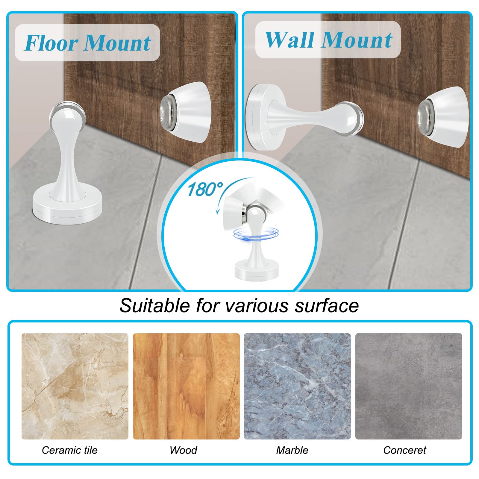 Butée magnétique au sol pour porte verre - Butée de porte magnétiqu Matériau durable et vis cachées : le loquet de porte magnétique est en acier inoxydable massif et une finition blanche lisse, peut résister aux rayures quotidiennes, à la corrosion et à la rouille, peut être utilisé pour l'extérieur ou l'intérieur. Efficace et service : la butée de porte magnétique robuste est un dispositif super efficace, contrairement aux cales de porte conventionnelles ont une mauvaise habitude d'endommager le bas de vos portes ou d'être un peu un risque de trébuchement., C'est exceptionnel. Remarque : Si vous n'avez pas besoin d'un magnétisme trop fort, vous pouvez ajouter une fine entretoise dans la rotule (coller sur de la mousse ou même du papier/carte) pour la réduire. Butée de porte agnétique Cachée de sol en acier inoxydable avec adhésifs et vis pour bureau... Haute qualité : Le loquet de porte magnétique est fabriqué en acier inoxydable solide et finition blanche lisse, conçu pour résister aux rayures quotidiennes, à la corrosion et au ternissement, peut être utilisé pour l'intérieur et l'extérieur. Description du produit TOKPLNU Lot de 1 butées de porte magnétiques solides en acier inoxydable, maintiennent les portes ouvertes fermement, solides et puissantes ; butées de porte magnétiques blanches empêchent les portes de claquer par le vent ou la violence, vous protègent efficacement les murs, les portes ou les poignées de porte, vous offrant une maison paisible et sans dommages Vous obtiendrez : TOKPLNU promet un bouchon de porte magnétique de haute qualité, si vous avez des questions ou insatisfait des butées de porte blanches, veuillez nous le dire, nous allons résoudre pour vous en 24 heures et vous donner une solution satisfaisante. Vous pouvez choisir l'installation appropriée selon vos demandes. La butée de porte moderne s'adapte à tout style de décoration d'intérieur, peut être utilisée pour l'extérieur tels que la porte de terrasse, les portes coupe-feu, les plinthes, la salle de bain, la chambre, le bureau, etc. Gardez votre porte ouverte : avez-vous rencontré ce problème ? Vous voulez garder la porte ouverte permettant à la maison de maintenir la circulation de l'air, mais le vent pourrait passer à travers et claquer les portes fermées. Et contrairement à d'autres butées de porte, la nôtre a une plaque de protection supplémentaire pour cacher les trous de vis, elle est fonctionnelle et belle. Contenu de l'emballage : Butée Magnétique Pour Porte 100mm D'acier Inoxydable De Plancher Plinthe Fabrication Plinthes Coins Alibaba Anti Porte Qui Claque [Si vous n'avez pas besoin d'un magnétisme trop fort, vous pouvez ajouter une fine entretoise dans la rotule (coller sur de la mousse ou même du papier/carte) pour le réduire., ] 1 x boulons d'ancrage d'expansion , 3 ancrages muraux , 5 vis Charge à ressort souple Support de porte magnétique intégré mécanisme d'amortissement qui fait un excellent travail pour empêcher la porte de frapper dans le mur, maintenez votre porte silencieusement et doucement, vous offrant un confort et sans endommager la maison. Haute dureté et fixation avec trous de vis triangulaires, très stable. Pour toute raison que vous n'êtes pas satisfait de nos butées de porte, veuillez rester en contact avec nous. Montage au sol/mural Butée de porte magnétique en acier inoxydable Deux façons d'installer : Peut être utilisé comme butées de porte magnétiques au sol ou comme butées de porte magnétiques au mur. Butée de porte magnétique TOKPLNU qui a résisté à des milliers de tests, peut maintenir fermement une porte lourde ou fine même par temps venteux, solide et puissant, répond à vos besoins dans un usage quotidien.