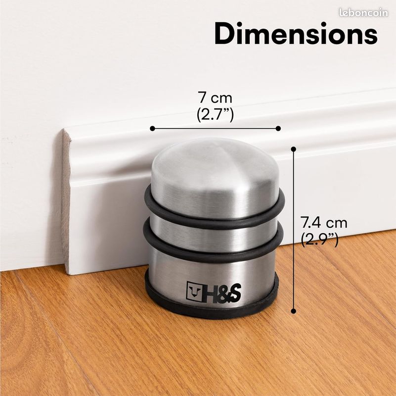 Spécifications: Matériau: Acier inoxydable 304 Taille: diamètre de la base de 45 mm, hauteur de 29 mm Le forfait comprend: 8 arrêts de porte fabriqués en acier inoxydable NUZAMAS 304 Ensemble de 8 arrêts de porte NUZAMAS 304 en acier inoxydable, présentés avec un pare-chocs en caoutchouc. L'installation au sol, robuste, peut supporter le poids de la porte. Orhemus Lot de 2 butées de porte décoratives – 8,9 cm en acier Butoir de porte à ressort Inox 304 - Finition brossé. 11,81 € $product->. Référence: IN611. Divers. Butoir de porte à ressort Inox 304 - Finition brossé. 11,81... Bloque Porte Lot De 8 Butées De Porte À Fixer Au Sol, En Acier Inoxydable Butée De Porte Le pare-chocs en caoutchouc haute densité fournit un amortisseur de porte empêchant la porte de claquer et de laisser des bosses, protégeant efficacement les portes, les murs ou les meubles et réduisant également le bruit
