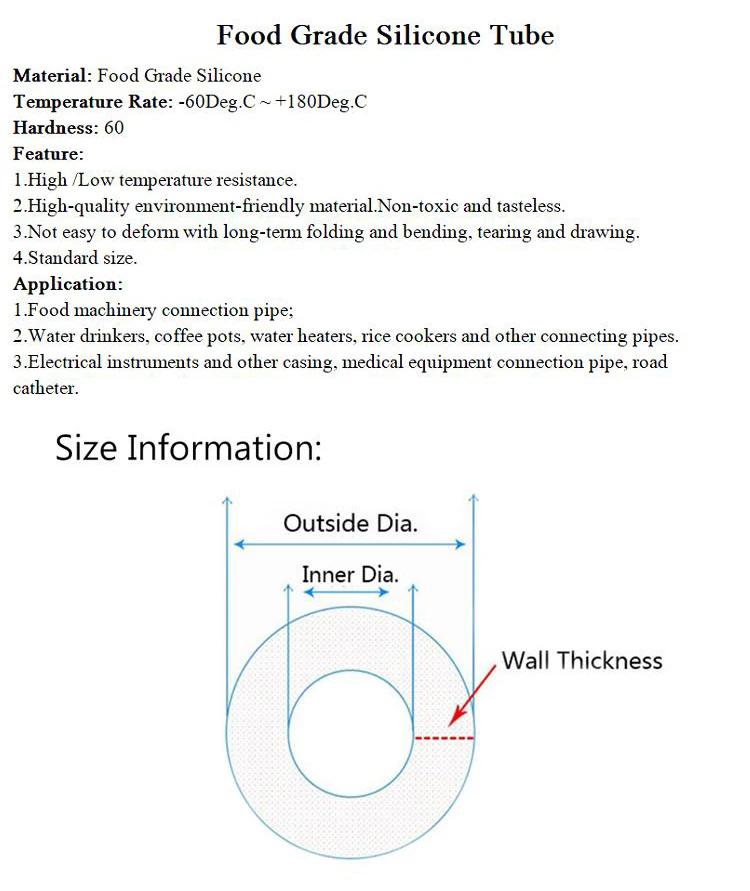 Descriptions: Translucide tube de silicone est conçu pour une variété d'applications de pompage et de transfert. Tube De Resistance Sourcing Map 2mm X 4mm Haute Température Résistant Flexible Tubulure Perfusion Contenu de l'emballage: 1xTube en silicone; Couleur principale: Blanc Taille : Le diamètre intérieur du tuyau d'aspiration est de 4 mm, le diamètre extérieur est de 9 mm. Haute résistance à la température : Résiste à des... Durite Silicone 4mm Tuyau De Tube En Silicone Robuste De 4 Mm Résistant à Haute Température Tuyau Gaz Butane 2m Pays de fabrication CHINE; Mat riau Silicone; Poids net 25g, Total Longueur 2M 6.56ft; Maximum Temperature 200C(392F), Temp rature minimum -60C (-76F); Duret 45 80 degr s Ce tube en silicone 100% neuf de haute qualité est conçu pour une variété d'applications de pompe et de transfert. Ce tuyau est inodore, insipide et inerte, les tubes sont capables de résister à une température élevée de 180C (intermittent) et sont disponibles en différents diamètres internes et épaisseurs de paroi Nom du produit: Tube en silicone; Taille: 2mm x 4mm/0., 08x0., 15(interne DiaxOuter Dia) , Total Longueur: 2M/6., 56ft; Maximum Temperature: 200C(392F) Pays de fabrication: CHINE; Matériau: Silicone; Poids net: 25g