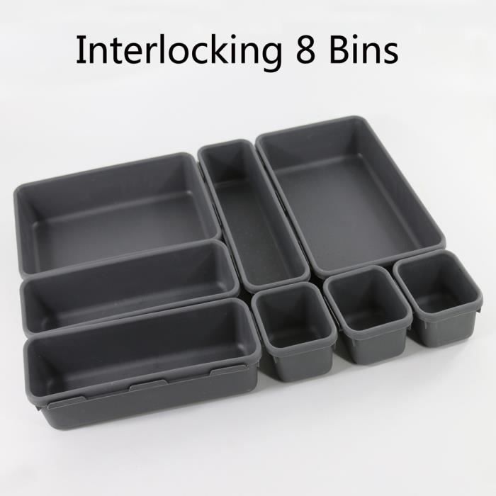 Lot de 8 plateaux de rangement de tiroir Addis comprenant 2 grands plateaux de 23,5 x 16 x 4,5 cm (l x P x H), 3 x moyens 23,4 x 8 x 4,5 cm, 3 x petits L 7,5 x P 7,5 x P 7,5 cm., 5 x H. Fabriqué en plastique de haute qualité, durable et non toxique ; système d'emboîtement simple sûr, étanche, finition facile à nettoyer, sans danger pour les enfants et réutilisable selon vos besoins La marque Addis est toujours synonyme de valeur et de qualité pour les générations précédentes. Fabriqué en plastique de haute qualité, durable et non toxique ; système d'emboîtement simple sûr, étanche, finition facile à nettoyer, sans danger pour les enfants et réutilisable selon vos besoins Excellente solution pour garder tout organisé et rendre votre tiroir ou bureau bien rangé ZJCHAO Bacs emboîtables Bacs de rangement à verrouillage intelligent, 8... Bac De Rangement Tiroir Addis Boîtes De Rangement à Base Souple Pour Organisation De Petit Bac 4,5 cm, parfait pour vos différents besoins ; Addis fait partie de la maison depuis 1780, basé au Royaume-Uni. Bac en plastique pour rangement au meilleur prix | Leroy Merlin Excellente solution pour garder tout organisé et rendre votre tiroir ou bureau bien rangé. L'ensemble comprend 8 plateaux emboîtables – 3 plateaux plus petits, 3 plateaux de taille moyenne et 2 grands ce qui signifie qu'ils peuvent facilement être disposés sur mesure pour optimiser l'utilisation d'un tiroir ou d'un plan de travail selon vos besoins – Dimensions : 7,5 x 7,5 x 4,5 cm (petit), 23,4 x 8 x 4,5 cm (moyenne), 23,5 x 16 x 16 cm., Hauteur : 4,5 cm (L) Addis – fait partie de la maison depuis 1780 – Fabriqué pour la vie