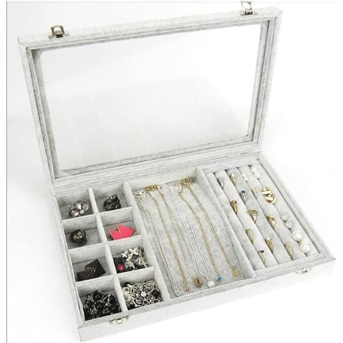 Boîte à bijoux noire avec intérieur en velours. Dimensions : 35 x 24 x 4,5 cm. Caisse en bois d'aggloméré avec revêtement en velours SONGMICS Boîte à Bijoux, Écrin à Accessoires 3 Niveaux, Coffre de Cuir PU de haute qualité] La boîte de rangement pour bijoux a une apparence classique et élégante, avec un cuir de grain de crocodile simulé en PU écologique... Collier Pour Porte Bijoux Capodimonte - Boîte à Bijoux Avec Couvercle "Chérubins En Boite à Bijoux En Attente Fenêtre en verre véritable , Dimensions env.