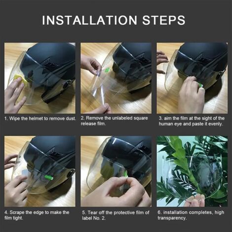 Protection anti-buée : un traitement spécial empêche efficacement la formation de buée sur la visière pour une vision claire pendant la conduite. URB film anti-buée pour casque Visière de casque universelle pare-vent... Film Anti-Buée Pour Casque Moto, Protection Universelle De La Visiere Anti Buee Film De Protection Universel Transparent Autocollant Visiere Casque Lunettes Visiereimpermeable 91931221 Transparence haute définition : fabriqué à partir de matériaux de haute qualité pour assurer la clarté de la visière du casque et rendre votre conduite plus sûre. Film Anti Buée Casque Moto RJSQAQE Film Anti-buée Universel Pour Visière De Casque écran Anti Buée Casque Moto Film autocollant totalement transparent officiant comme un double vitrage. Pose très-facile, s'adapte à toutes les visières du marché Taille : taille unique Couleur : voir photo., Spécifications: 1., Transparence haute définition : fabriqué à partir de matériaux de haute qualité pour assurer la clarté de la visière du casque et rendre votre conduite plus sûre., 2., Protection anti-buée : un traitement spécial empêche efficacement la formation de buée sur la visière pour une vision claire pendant la conduite., 3., Conception imperméable : avec fonction de protection contre la pluie, vous pouvez donc profiter d'une expérience de conduite confortable même les jours de pluie., 4., Forte compatibilité : design universel, adapté à divers casques de moto et de vélo électrique, ce qui le rend confortable et pratique. Contenu : 1 film anti-buée / protection contre la pluie