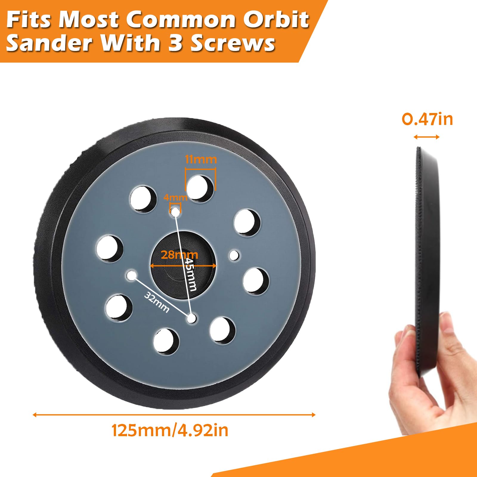 Il ne se déforme donc pas et ne s'use pas facilement, même après une utilisation prolongée. 【Adhésif puissant, stable et anti-décollement 】: Le plateau ponceuse est doté d'un support adhésif puissant qui adhère fermement à tous les types de papier abrasif et ne se décolle pas facilement, même sur les polisseuses à grande vitesse. plateau ponçage ponceuse EX125E EX125ES AEG 125mm pièce 4932352870 La fixation par double vis M4 augmente la force de serrage du papier abrasif, assure stabilité et stabilité pendant le ponçage, réduit la fréquence de remplacement et optimise le temps de fonctionnement Spécialement conçu pour la série PEX 270, parfaitement compatible avec les modèles A/AE. Son corps noir et ses vis en métal argenté (taille M4) offrent une structure robuste, idéale pour un ponçage intensif Description du produit VGECEE Disque de ponçage professionnel, disque de ponçage autocollant robuste, compatible avec PEX 270 A/AE, adhérent et antidérapant, avec aspirateur à 8 trous, polissage facile du bois, du métal et des murs, durable et sans tracas. 【Aspiration efficace de la poussière】 : La surface du plateau ponceuse 125mm est dotée de 8 petits trous qui collectent efficacement la poussière et les débris générés pendant le ponçage, réduisent les éclaboussures et maintiennent l'environnement de travail propre et ordonné. Spécifications : Matériau : Plastique, Taille : Comme illustré, Poids : 130 g Qualité]Le tampon de ponçage est fabriqué en PU de haute qualité, la surface est lisse, résistante à l'usure et durable, difficile à casser et peut être utilisé pendant longtemps. C'est un excellent choix pour le ponçage et le polissage.[Utilisation polyvalente]Le plateau de ponçage est parfaitement adapté au ponçage et au polissage des voitures, des meubles, du bois et... 【Largement compatible, application professionnelle】 : Notre plateau ponçage professionnel pour ponceuses est parfaitement conçu pour les ponceuses à disque PEX 270 A et PEX 270 A. Plateau Ponceuse 2 Pièces 125mm Tampon De Remplacement Tampon De Ponçage Rechange Plateau Ponceuse Skil Aspiration puissante de la poussière, ponçage propre. Compatibilité professionnelle, réglage facile. Adapté au bois, au métal, aux murs et autres matériaux, il répond facilement à différents besoins de ponçage et améliore l'efficacité du travail Son diamètre de 5 pouces s'adapte parfaitement et est facile à installer, pour un ponçage efficace et sans souci. 2 Pièces Plateau De Ponçage Auto-Agrippant 125mm - 8 Trous
