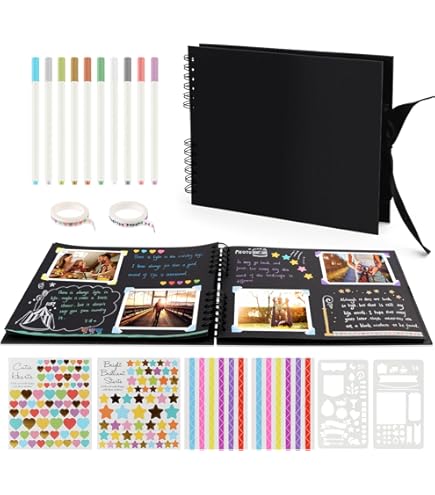 C'est plus amusant et plus utile lorsque vous créez votre propre album photo et enregistrez vos souvenirs. L'album photo Magicfly DIY est idéal pour les loisirs créatifs, les anniversaires, les mariages, la Saint-Valentin, l'obtention d'un diplôme, les voyages, les records de croissance de bébé pour enregistrer vos merveilleux moments. Polyvalent : il peut non seulement collecter des photos, mais aussi stocker des lettres, des cartes postales, des certificats ou tout ce que vous souhaitez collecter. Niserelesa Album Photo Scrapbooking,Album Photo avec Couverture Spirale Contenu : 1 album photo à faire soi-même + 10 stylos + 2 autocollants à gravure dorée + 3 autocollants d'album + 3 autocollants d'angle + 2 modèles de peinture. Longueur : 28,5 cm x 21 cm, au total 40 feuilles (80 pages). Informations sur le produit : album photo (bleu azur), deux autocollants gravés dorés, trois autocollants d'album, deux modèles de peinture différents, trois autocollants d'angle et dix stylo. Longueur : 28,5 cm x 21 cm, au total 40 feuilles (80 pages). Peut contenir 80-160 photos, le nombre de photos dépend de la taille de la photo. Performance supérieure : enveloppe en carton... Performance supérieure : enveloppe en carton, intérieur noir de qualité supérieure, papier kraft noir épaissi, ne se décolore pas et durable. Peut contenir 80-160 photos, le nombre de photos dépend de la taille de la photo. Informations sur le produit : album photo (bordeaux), deux autocollants gravés or, trois autocollants d'album, deux modèles de peinture différents, trois autocollants d'angle et 10 stylo. Il peut être utilisé comme mémoire, notes de voyage ou livre d'aventure, etc. Album Revew Template | Prntable AT A GLANCE Album Photo, Album Photo à Personnaliser, 80 Pages, Peut être Ce superbe kit contient tout ce dont vous avez besoin pour conserver vos souvenirs Album photo, coins photo, pochoirs de peinture, autocollants dorés, autocollants d'album et 10 stylos.