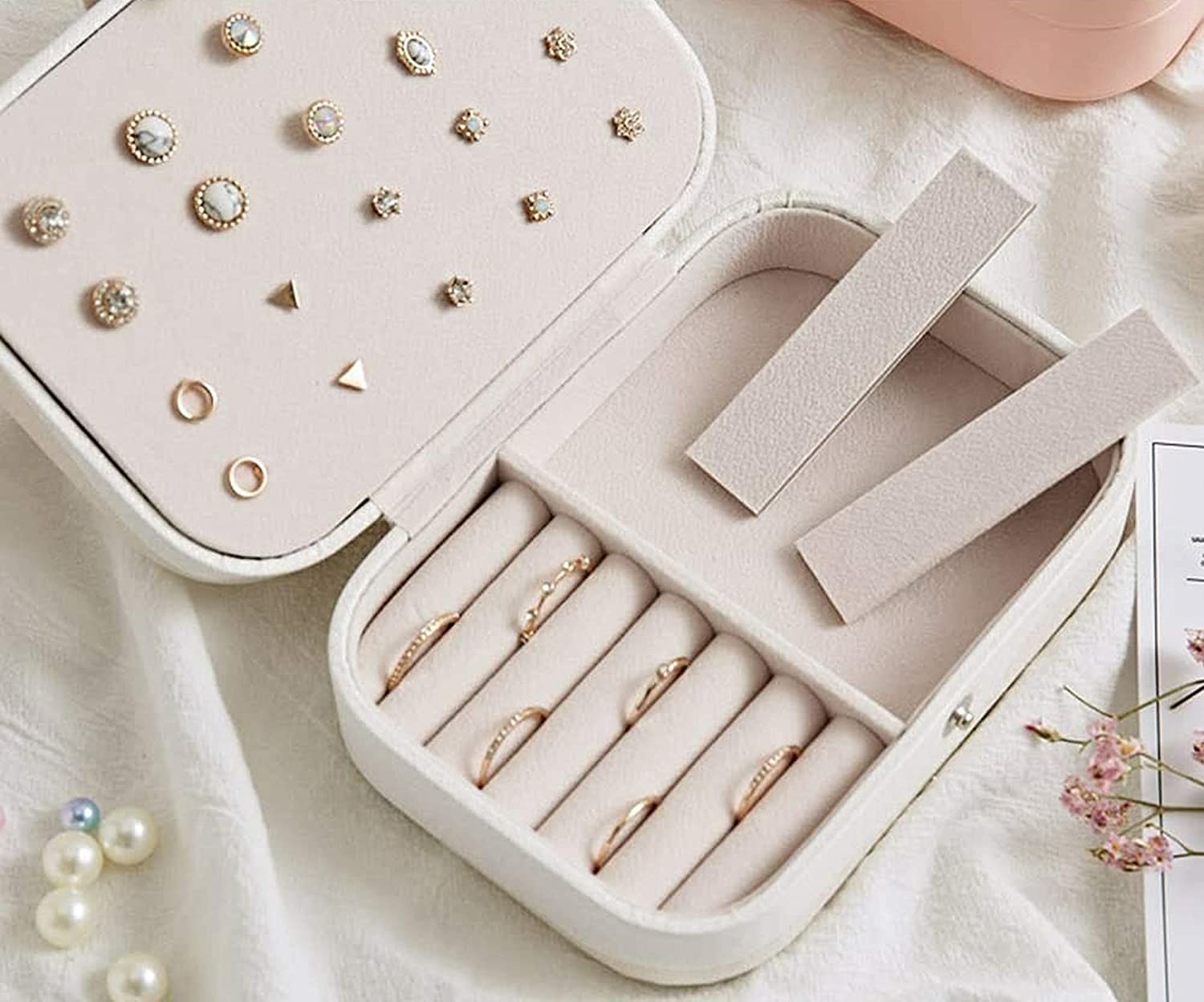 Portable et compact : l'organisateur de boîte à bijoux a un design simple et compact est facile et peut être placé magnifiquement sur votre commode, table de chevet, comptoir de salle de bain ou coiffeuse, économisant beaucoup d'espace, s'adapte facilement à votre décoration et rend votre chambre plus propre. Un bon choix de cadeau : les boîtes à bijoux sont idéales pour les femmes ou les filles. Gardez tous vos bijoux bien-aimés bien organisés. Petite boîte à bijoux portable avec miroir pour bracelets, boucles d Sturdy Safe:Le robuste rangement bijoux femme offre une excellente protection contre les écrasements ou les chocs de bagages pour garder vos bijoux en sécurité pendant le voyage. La fermeture éclair robuste ne s'ouvrira pas pendant le voyage, ce qui permet de garder le sac bien rangé Les boîtes à bijoux sont portables et légères à emporter partout. Extérieur en polyuréthane de haute qualité et polaire douce. N'hésitez pas à nous contacter et nous vous aiderons à résoudre tout problème si vous n'êtes pas satisfait dans les 180 jours. Chaque fille devrait avoir une boîte à bijoux, elle peut être un bon organisateur pour colliers, bracelets, bagues, boucles d'oreilles et autres bijoux, bon pour ranger les petits bijoux quotidiens devant le chevet avant de dormir. Boîtes à bijoux de voyage : il s'agit d'une petite boîte de rangement à bijoux tendance, dimensions : 10 cm (L) x 10 cm (l) x 5 cm (H), légère et portable. C'est un excellent choix de cadeau pour votre mère, épouse, fille ou amie pour la Saint-Valentin, un anniversaire, la fête des mères, Noël, un mariage ou tout autre moment significatif. Boite Amazon Hoinya Boîte à Bijoux Pour Femme, Boîte à Bijoux De Voyage, Petite Amazon Boite A Bijoux Fermeture Éclair de qualité supérieure La fermeture éclair est lisse et non coincée, facile à ouvrir et à fermer, empêchant efficacement vos accessoires de se perdre. Design Compact et Portable]Notre boite bijoux voyage mesure 10 x 10 x 5 cm, ce qui la rend légère et facile à transporter. · [Cuir PU de Qualité et... Une bonne qualité à prix abordable. Détails attentionnés : boîte à bijoux de voyage avec design multi-unités, comprenant 3 crochets pour colliers, 4 compartiments pour boucles d'oreilles et 6 emplacements pour bagues, le déflecteur du treillis peut être démonté pour placer des accessoires de différentes tailles tels que le rouge à lèvres et les broches. Cet organisateur de bijoux sera un joli cadeau à chérir. Organiseur de bijoux de voyage Cette boîte à bijoux au design et à l'aspect extérieur élégant est un cadeau parfait pour une mère, une petite amie, une épouse, une fille, des camarades de classe, des collègues, des amis pour la Saint-Valentin, un anniversaire, la fête des mères, Noël, le Nouvel An et un anniversaire de mariage, etc. Dimensions : 10 x 10 x 5 cm Design intérieur raisonnable avec 2 compartiments amovibles. Spécialement conçus pour les voyages ou les voyages d'affaires, emportez vos bijoux avec vous lors d'une fête ou d'un voyage.