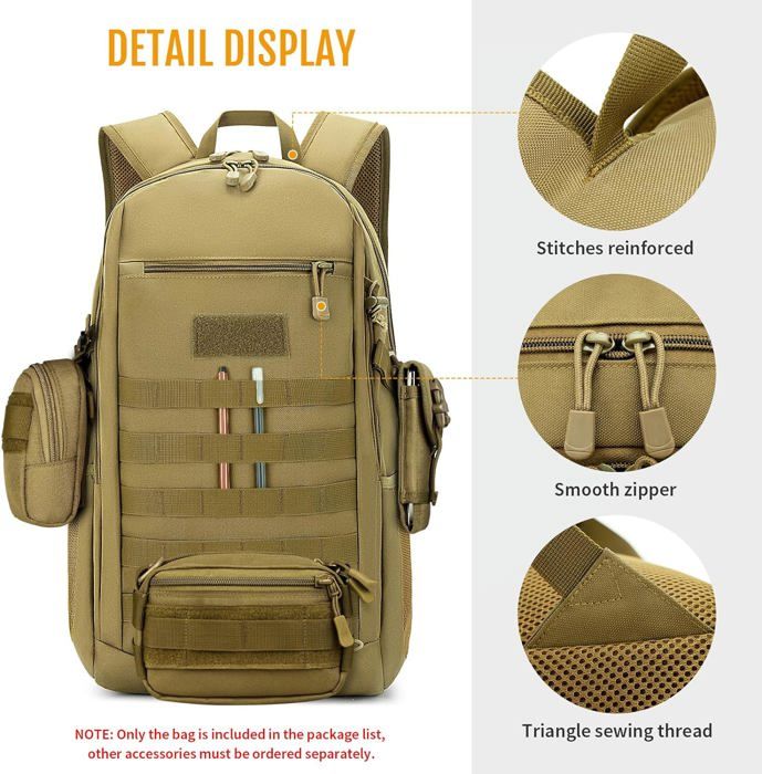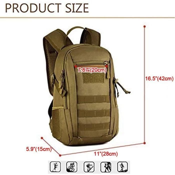 Mini sac compact et confortable : la zone arrière et les bretelles avec sangle de poitrine réglable sont ventilées en maille rembourrée sur vos épaules avec un empiècement réglable, une zone arrière et une bandoulière rembourrées en maille ventilée, respirant et confortable. Sac A Dos Survie Sac à Dos Tactique Militaire 12l Sac Militaire En Ligne Idéal pour une utilisation en intérieur et en extérieur, y compris la randonnée, la chasse, la pêche, le camping, la moto, le vélo, le petit sac à outils, le sac de rangement, etc. Caractéristiques : Dimensions : 22,9 x 38,1 x 11,4 cm. Le sac à dos de 12 L est résistant aux rayures, robuste et ne se décolore pas facilement. [Système Molle]Vous pouvez équiper le système d'extension externe MOLLE en combinaison avec d'autres appareils Convient pour toutes les occasions : idéal pour être utilisé comme sac à dos de voyage, sac à dos décontracté au quotidien, sac à dos pour ordinateur portable de 10, etc. La coque est solide et résistante à l'eau et cousue avec des fils de nylon renforcés. Fabriqué en tissu Oxford 700D haute densité, il est résistant à l'eau et super durable. Le système MOLLE vous permet d'ajouter des pochettes supplémentaires ou... Remarque : c'est un très petit sac à dos. Grand compartiment principal extensible (extensible de 12,7 cm supplémentaire)., Poche de rangement. Sac à dos noir modulable 20L/30L - Ares Sangle Molle tout au long pour attacher des poches tactiques supplémentaires ou tout le matériel dont vous avez besoin Tirettes de fermeture éclair faciles à prendre Soutien dorsal Éponge épaisse et respirante. 1 poche avant zippée pour les clés ou autres. Il s'agit d'un mini sac à dos militaire de 10 L. Mini sac à dos pour homme avec système Molle : boucles MOLLE lourdes et sangles pour les fixations modulaires. Sangle Molle tout au long pour attacher des poches tactiques supplémentaires ou tout le matériel dont vous avez besoin.