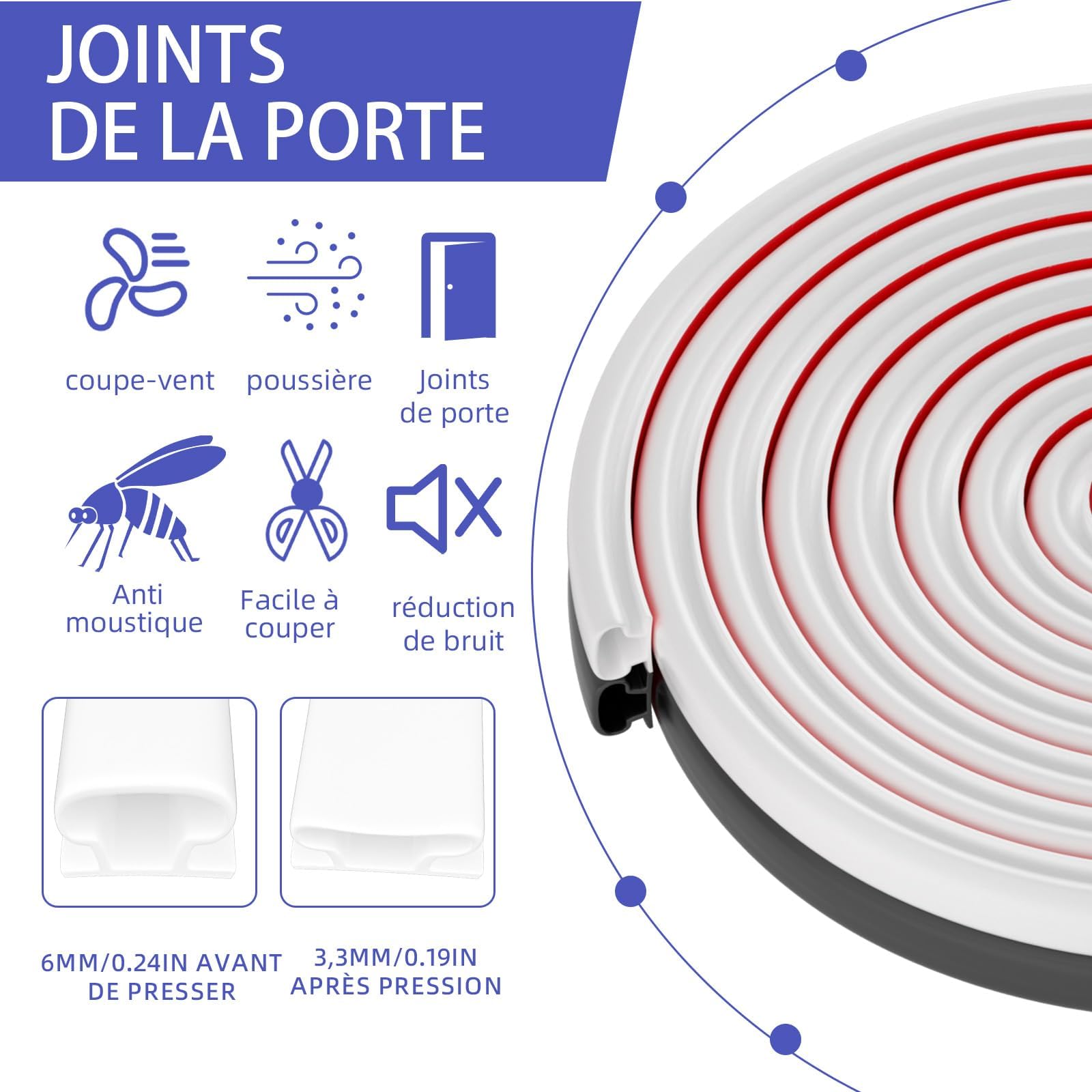 APPLICATION: Type D joint caoutchouc porte pour des écarts de porte compris entre 2,5 et 6 mm. Description détaillée: Nom: Joint de porte Forme : en forme de D Matériel: Caoutchouc Installation: Auto-Adhésif Couleur: noir Longueur :10 m (environ) Caractéristiques: Le joint de porte est en caoutchouc sûr et de haute qualité, doux et élastique, résistant à l'humidité, Le coupe-froid de porte est principalement installé dans l'espace, peut réaliser l'étanchéité au vent, à la poussière, à l'eau, l'isolation thermique et d'autres fonctions. Efficace - Ce joint de porte performant empêche le vent de s'infiltrer par les interstices entre les portes et les fenêtres et protège de la pluie, du bruit et des insectes. Polyvalent.- Convient à toutes les portes en métal, en verre et en plastique, et est également idéal pour les portes en bois.Polyvalent - Il offre une isolation phonique et une durabilité optimales, résolvant... Le caoutchouc autocollant adhère bien et l'installation est simple., Joint étanche. Si vous avez des questions sur nos produits, n'hésitez pas à nous contacter. Collez-le sur le cadre de la porte ou de la fenêtre et appuyez plusieurs fois pour obtenir une adhérence optimale(Il est préférable d'attendre 24 heures avant utilisation). Sa souplesse permet aussi de faire l'encadrement sans forcément couper les sections car on peut facilement le courber. Joint De Porte D'Entrée D-Profil Nouvelle Silicone, 12M Joint Porte Fenêtre Isolation Phonique Lors de l'installation du joint d'étanchéité pour cadre de porte, veillez à ce que les cadres de porte et de fenêtre soient exempts de poussière et d'eau. Veuillez mesurer la taille avant l'utilisation et couper pour répondre à vos besoins. Vous offrir un environnement confortable. Joint Fenetre Joint Porte Fenetre Isolation Et Phonique, Forme D Caoutchouc Autocollante Bande Etancheite Anti Froid Isolant Thermique Blanc 7m 97859881 Joint De Porte Joint Porte Fenetre Isolation Froid et Phonique,Type D Caoutchouc Joint de Porte, TPE... Principalement utilisé dans l'espace du cadre de la porte, en raison de sa conception unique, il peut également être appliqué à toutes les portes et fenêtres, armoires, portes de voiture, Résistance aux chocs et au glissement pour les équipements et meubles de sport. MULTI-FONCTIONNEL: Cette bande de tapis de porte peut être utilisée pour protéger contre le vent, la poussière et le bruit, Le joint porte entree peut également réduire efficacement l'usure et le bruit lors de l'ouverture et de la fermeture des portes et des fenêtres, et protéger les portes et les fenêtres contre les dommages.