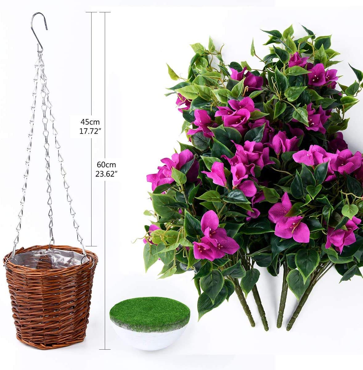 Le panier suspendu dispose d'une construction en acier robuste avec un élégant revêtement en vinyle noir, assurant une résistance à la rouille et un charme durable pour votre havre de plein air. 💐 Obtenez un emballage économique : nos paniers suspendus artificiels avec fleurs comprennent 8 lots de plantes artificielles et de fleurs de couleurs mélangées. Paniers Suspendus Artificiels Avec Fleurs | Panier Suspendu Complet avec un panier en noix de coco, des boules de paille décoratives, de la mousse et une chaîne robuste, cet ensemble mesure 49,8 x 49,8 x 60 cm lorsqu'il est entièrement assemblé. Profitez du mélange fleuri de rose rouge, rose, rouge et jaune – une célébration vibrante du printemps et de l'été. Lot de 12 paniers de fleurs artificielles à suspendre Fabriqué à partir des meilleurs matériaux en soie et en plastique, chaque lot de fleurs et de feuillage présente des textures authentiques qui imitent le travail manuel de la nature. Jolie suspension de fleurs 💐 Satisfaction garantie : nos plantes artificielles suspendues à l'extérieur sont conçues pour un assemblage et une installation sans effort, vous permettant d'améliorer votre espace avec facilité. Nous nous engageons à fournir des réponses rapides et à clarifier toute incertitude pour garantir votre satisfaction absolue. Dites adieu à l'arrosage et aux soins quotidiens - ces fleurs sont éternellement parfaites. Elyum Paniers Suspendus Artificiels Avec Fleurs, Plantes Artificielles à Suspendre Pour Porche, Fleurs Artificielles à Suspendre Avec Panier Pour Extérieur... PANIERS DE FLEURS artificiels r??alistes faciles ?? entretenir avec nettoyage si - EUR 39,90.À VENDRE! 296230941024 💐Dites bonjour à la décoration : améliorez n'importe quel espace avec une touche de splendeur de la nature en utilisant nos paniers de fleurs exquis, conçus pour ajouter une fleur de charme à votre jardin, porche, terrasse, balcon et entrée. 💐 Sortez des tracas : nos fleurs artificielles sont composées de plastique résistant aux UV de qualité supérieure, conçus pour résister aux conditions météorologiques les plus difficiles et résister à la décoloration sous l'éblouissement du soleil.