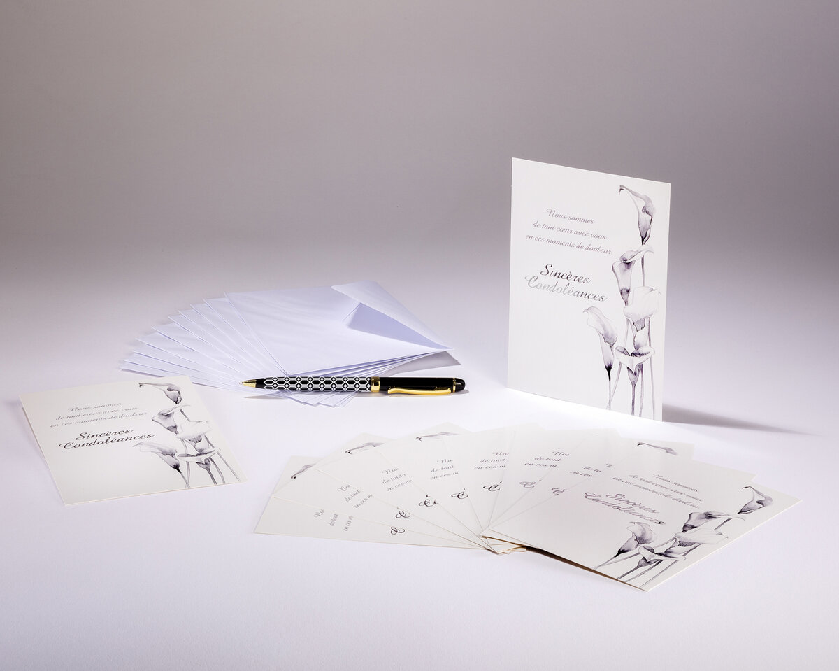 Mais vous serez heureux qu'ils soient là si vous le faites. Lot de 24 cartes de condoléances Condoléances personnalisées. · 24 belles cartes vierges avec enveloppes : dans des pastels de bon goût, ces cartes et enveloppes rayonnent de tendresse Condoléances personnalisées. 24 belles cartes vierges avec enveloppes : dans des pastels de bon goût, ces cartes et enveloppes rayonnent de tendresse. La sympathie ne doit jamais être une chose superficielle, alors approfondissez la vôtre avec les cartes de condoléances sincères de S&O. Nous avons donc créé un tout nouveau lot de grandes cartes de condoléances de 12,7 x 17,8 cm avec enveloppes – avec 6 styles de messages différents, qui vous permettent de dire « désolé pour votre perte » de la bonne façon pour s'adapter à la situation. Lot de 24 cartes de condoléances en vrac avec 8 designs uniques - 24 cartes de condoléances double face avec enveloppes pour votre entreprise - Cartes Ce sont des cartes qui ne bavent pas et ne tachent pas. Parfait pour les maisons de repos, les hôpitaux ou l'église lorsque vous pourriez avoir besoin d'écrire des cartes de deuil à de nombreux membres de la famille. Dans ce nouveau monde effrayant, nous prions que vous n'ayez pas à écrire trop. Cartes De Condoléances La Poste Lot De 50 Cartes De Condoléances Din A6 Avec Bord Noir Fait À La Main Carte De Condoléances Personnalisée Carte condoléances. Invitation anniversaire ... Blanc (807) Blanc (807 produits disponibles); Bleu (184) Bleu (184... Papier cartonné épais et de qualité : oubliez les cartes fines de 250 g/m², car une carte de vœux S&O est une carte de haute densité de 300 g/m² – avec des enveloppes de 120 g/m². Parfait pour les soins de santé, l'église ou le personnel de repos à domicile.