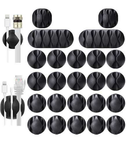 Caractéristiques : Type d'article : clips de support de câble., Matériau : silicone., Couleur : noir. Quantité suffisante pour vos besoins quotidiens Contenu de l'emballage : comprend 8 x canaux simples, 6 x double canal, 4 x triple canal et 2 x clips de câble à quatre canaux. Vous ne trouvez pas l'espace nécessaire pour stocker vos pots d'épice Principaux points forts · Marque. TakFree · Couleur. Noir · Matériau. Papier,Silicone · Type d'installation. Autocollante · Nombre de pièces. 20 · UPC. 605556629783... Clip De Cable Adhésif Range Câbles Magnétiques 6 Clips De Gestion De Câbles Magnétiques Alaoo - Autocollants Sans Résidu Pour Bureau, Maison, Voiture Cache Cable Clips Adhésifs Pour Cable Taille : comme indiqué sur la photo., Quantité : 20 pièces. Peut contenir une variété de câbles : nos clips sont compatibles avec des câbles de 6 mm de diamètre ou moins comme câbles de charge USB, câbles audio, câbles d'ordinateur, câbles réseau et plus encore. Matériaux de haute qualité : chaque support de câble est fabriqué à partir de silicone non toxique, non magnétique, antistatique et flexible, de sorte que vous pouvez les utiliser pour tout type de fil. Organiseurs de câbles pour garder vos câbles organisés et sans nœuds. Une fois que le fil est inséré dans la fente, il ne perdra pas du tout son adhérence