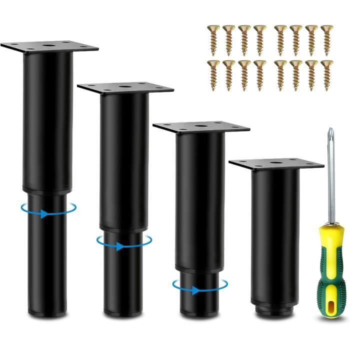 Conception pratique: Les pieds de meubles sont utilisés pour augmenter la hauteur des meubles, amener les meubles inégaux à la même hauteur, libérer facilement de l'espace sous les meubles, ou faciliter le déplacement des meubles. Application large: les pieds d'armoire ont une forte capacité de charge et conviennent aux canapés, tables basses, armoires, meubles télé, établis, bars de petit déjeuner, bureaux, étagères et autres meubles dans les chambres, salons, bureaux, salles de bain, restaurants, cuisines et autres lieux. JJWUYUE Lot de 4 pieds de meubles de 10 cm - Pieds d'armoire Les pieds sont adaptés pour les armoires, les meubles de bureau, les canapés, les tables basses, les meubles TV et les lits. - Design unique de hauteur réglable de 0,5 à 1,5 cm. - Hauteur des pieds de placard : 10 cm, diamètre : 5 cm. - Contenu Essuyez-le simplement avec un chiffon. Pied Pour Canapé 4 Pcs Pieds De Meubles, 10cm Pieds De Meubles Réglables, Pieds D Rehausseur Pied De Table Le fond ABS est antidérapant et peut protéger votre sol contre les rayures, protégeant parfaitement vos meubles et sols. Il est également très facile à nettoyer. Le AAB simple et moderne peut être facilement combiné à tous les styles, ce qui apporte un sens de la mode dans la pièce. 4 Pièces Pieds de Meubles Réglables Pied de Table Metal Pied de Meuble...