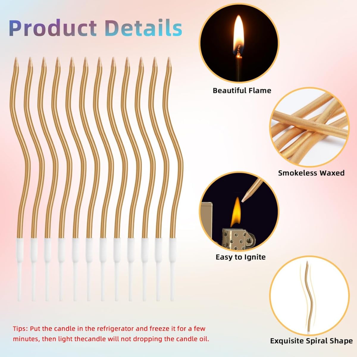 Idéal pour toute fête d’anniversaire ou célébration d’une étape importante. Ajoutez du lustre à votre célébration. C’est une bougie idéale pour les gâteaux d’anniversaire. Bougies D'anniversaire Dorées Torsadées PartyDeco – Curl Gold X8 14 Cm Bougies de gâteau d’anniversaire, 36 pcs Bougies d’anniversaire en spirale pour gâteau, Bougie de cupcake longue mince, Bougies de gâteau métalliques pour les décorations de gâteau de fête de mariage d’anniversaire fonctionnalités: Ce produit est fabriqué à partir d’un matériau de cire de qualité, il est inodore et sans danger pour votre utilisation. 【Conception originale en spirale avec supports】 : Ces bougies de gâteau sont conçues avec des formes en spirale et teintées d’un revêtement métallique, on dirait que de nombreuses fées dansent sur le gâteau, il est facile de créer une atmosphère romantique ; Les supports en plastique permettent d’éviter de casser la belle surface du gâteau. YANGWEN Lot de 36 bougies d'anniversaire en spirale pour gâteau, longues et fines, bougies métalliques pour décoration de gâteau d'anniversaire, de fête de... Les bougies d’anniversaire sont fabriquées à partir de paraffine de haute qualité, qui est sûre, non toxique et insipide, respectueuse de l’environnement et biodégradable, et ne perdra pas de cire après avoir brûlé pendant une longue période. 【Matériaux sûrs】 : Les bougies à gâteau sont fabriquées à partir d’un matériau de cire de haute qualité, qui est inodore et non toxique, sûr à utiliser. 【Conception en spirale】 Les bougies de gâteau d’anniversaire ont une perspective métallique, avec des motifs en spirale, ce qui est élégant et à la mode, et dispose d’un support détachable, qui peut être facilement inséré dans le gâteau et fermement fixé, et il peut être parfaitement assorti à n’importe quel gâteau. Convient également pour la décoration de cafés, pâtisseries, boulangerie. Tout pour illuminer le gâteau d'anniversaire Bougies Torsadées JJiaoLinin Bougies Anniversaire, 36 Pièces Bougies D'anniversaire Torsadées, Bougies De Gâteau En Spirale Avec Supports Idéales Pour Décorations De Mariages, Fêtes Et Anniversaires(Or Bougie Doree Anniversaire Taille appropriée : Chaque taille de bougie de gâteau torsadé mesure environ 6 pouces/15 cm de longueur (support inclus), 0,2 pouce/0,5 cm de diamètre, La taille du support en plastique est d’environ 1,8 pouces / 4,5 cm de longueur, taille générale à utiliser, adaptée à la plupart des gâteaux.