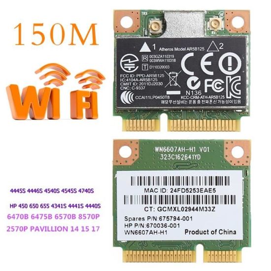 Caractéristiques du KVSERT : Type : ., Type : interne., Application : ordinateur portable. Carte réseau WiFi Bluetooth Qualcomm Atheros QCWB335 pour Asus X541NA Tarjeta inalámbrica Atheros AR9832 AR5BHB116 2,4/5 GHz, un solo chip, 300 Mbps, 802.11n, MINI... Caractéristique : jusqu'à 300 Mbps. Seul le contenu de l'emballage ci-dessus, les produits ne sont pas inclus. Type d'interface : Mini PCI., Protocole : 802., 11n., Protocole : 802., 11 a/g. Interface : média mini pci- Taille : taille standard., Couleur : argenté., Matériau : plastique., Quantité : 1 pièce., Contenu : 1 carte WiFi . Il s'adapte à toutes les marques d'ordinateurs portables, telles que -r/Asu-s/Samaung/, . Numéro du modèle : AR5BHB116 AR9832., Type : ., Application : ordinateur portable. Facile à installer et pratique à utiliser. Carte réseau NGFF Pour Atheros QCNFA335 NGFF 300M Carte réseau fil 4.0 DW1707 0VRC88... Carte Wifi Asus Carte Réseau - SURENHAP - AR9565 QCWB335 - 150 Mbps - Mini PCI-E - 802 Carte Wifi 6 Pc Portable Carte WiFi uniquement, les accessoires figurant sur ne sont pas inclus