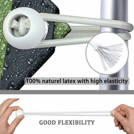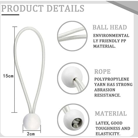 DURABLES : Nos tendeurs à boule conviennent à une utilisation en extérieur. Ils conservent leur élasticité et leur résistance à la traction sans s'étirer. Leur tension élevée permet une fixation sûre et un démontage rapide de la bâche.RÉSISTANT À L'USURE : Ces élastiques sont fabriqués en caoutchouc hautement élastique et résistant aux UV. Grâce à leur excellente... Ces boucles extensibles de 12,7 cm sont très pratiques pour de nombreuses applications, en particulier parfaites pour sécuriser facilement un auvent, une bâche, des rabats de tente, des tentes d'événement, et plus grâce à la fermeture à boule. Les tendeurs sont des outils pratiques, faciles à fixer ou à enlever de la bâche ou de l'auvent. 50 pcs Tendeur Elastique avec Boule, Sandow Elastique, pour Bâches Tendeurs De Fixation Duendhd Lot De 100 Tendeurs élastiques Avec Boules Pour Chapiteaux Tendeurs Elastique Avec Boule Le ballon élastique est spécialement conçu et testé avec du plastique blanc de haute qualité et un cordon élastique traité anti-UV qui surpasse la concurrence. La boucle élastique est facile et rapide à installer et à enlever, il suffit de passer la boucle élastique à travers l'œillet de la bâche. Les tendeurs à boucle longue standard pour chapiteaux, tentes, bannières, bâches sont des accessoires supplémentaires pour sécuriser les articles ménagers, sécuriser les articles automobiles, auvents, bâches, ombres, sacs de couchage, etc. Taille des élastiques : le cordon est de 12,5 cm, le diamètre de la boule blanche est de 3 cm. Caractéristiques de l'article : Longueur totale : environ 16 cm. En caoutchouc durable et résistant aux UV, ils ne cassent pas et durent longtemps. Longueur réglable de 15,2 à 30,5 cm. Très faciles à utiliser - pas besoin d... Les balles élastiques pour bâche sont des outils intelligents multifonctions pour la survie en extérieur ou en intérieur.