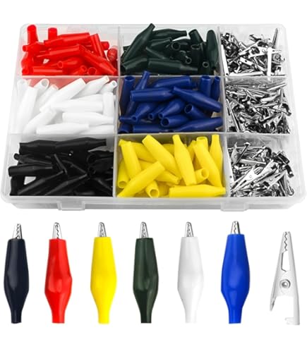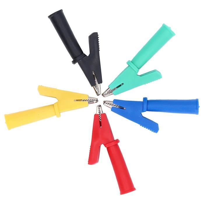 Package Included: 25 x samall alligator clip 25 x medium alligator clip 25 x large alligator clip Par exemple, lors de la connexion d'un circuit, la gaine rouge et la gaine noire permettent de distinguer rapidement les pôles positif et négatif de l'alimentation. ✅[Largement utilisé] : principalement utilisé pour la connexion de circuits et les tests électriques ; sera le meilleur choix judicieux pour les ingénieurs électriciens et les amateurs de bricolage électrique. Pinces crocodiles isolées CIKONIELF - Pince de test Jack 4mm - Ouverture 10mm - 60049 La gaine isolante multicolore des pinces crocodiles permet une identification rapide des connexions. Pince Crocodile Extérieur Pince Crocodile 75 Pcs Pince De Test Électrique Pinces Pince Crocodile Pour Câble ✅ [Connexion rapide] : la connexion du circuit est réalisée par une pince, ce qui élimine parfaitement le phénomène de dommages causés par la soudure sur les équipements électriques ou les circuits imprimés. ✅ [Conception de sécurité] : une gaine en PVC isolant peut également éviter les courts-circuits. Connexion rapide, déconnexion rapide. Caractéristiques : Cette pince crocodile, étui à pince crocodile est fabriquée en caoutchouc de silicone, double isolation, le clip est fabriqué en métal de haute qualité, a une bonne conductivité, la mâchoire globale de chaque pince crocodile est parfaitement cassée fermement, tenue fermement et utilisée pendant une longue période