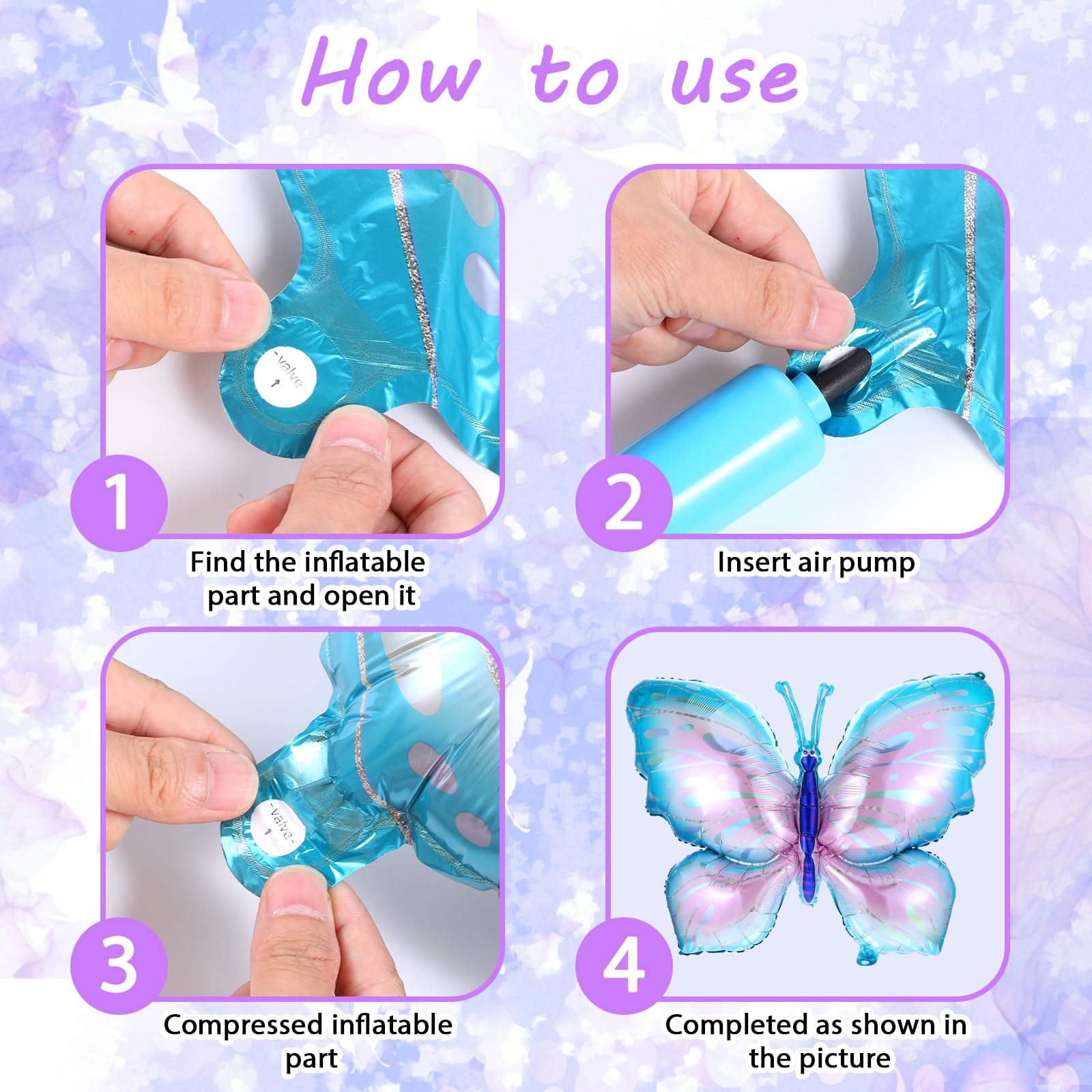Auto-scellants et réutilisables : nos ballons en aluminium en forme de papillon de la jungle peuvent se fermer après le gonflage, sans utilisation supplémentaire. Ballon Helium Lot De 8 Ballons En Aluminium En Forme De Papillon Pour Fille - Multicolore - Décoration Pour Fête à Thème Papillon, Anniversaire, Fête Prénatale Helium Pour Ballon Avertissement De Sûreté Pas d'avertissement de sécurité Expédition depuis la ance - Livraison sous 5 jours ouvrés.Lot de 6 grands ballons en aluminium Mylar pour décoration de fête d'anniversaire sur le thème... Ne pas trop gonfler pour éviter les éclats, 80 % à 90 % suffisamment, éviter les sources de chaleur, les objets pointus et les frottements excessifs. Contenu : 6 ballons en aluminium motif papillon, dégradé de couleur bleu et rose, la taille est d'environ 100 cm de largeur x 31 cm de haut. Notre kit de ballons papillon métalliques est dégonflé à l'arrivée. 1 rouleau de ruban, vous devez couper la taille du ruban par vous-même. Remarque : nos ballons papillon peuvent être gonflés avec de l'air ou de l'hélium. 【Convient pour diverses occasions】: ces ballons papillon en mylar sont parfaits pour diverses fêtes et célébrations, telles que les mariages, anniversaires, fêtes prénatales, etc. Matériaux de bonne qualité : nos ballons géants en forme de papillon sont fabriqués en feuille d'aluminium de bonne qualité, qui a une bonne durabilité et ténacité. Ces décorations de fête d'anniversaire papillons ne sont pas faciles à éclater ou à fuir, vous permettant de profiter de la beauté pendant une longue période.Auto-scellants et s : nos ballons en aluminium en forme de papillon de la jungle peuvent se fermer après le gonflage, sans utilisation supplémentaire 【Ballons papillon beaux et uniques】: nos ballons papillon sont le choix idéal pour votre fête. Les décorations de fête prénatale papillon peuvent être utilisées comme décorations à thème, décorations de scène ou comme cadeaux de fête pour ajouter une atmosphère unique et exquise à votre événement. Jolis ballons Mylar pour organiser originale : anniversaire enfants original, Noël Parfait, Boum ou Pyjama Party extra, Garden Party tendance En outre, peuvent être utilisés à plusieurs reprises, vous pouvez également les dégonfler et les ranger pour une utilisation future dans les décorations de fête d'animaux. Si vous voulez qu'ils flottent, veuillez les remplir avec de l'hélium. Chaque fournitures de fête d'anniversaire papillon est conçue dans un dégradé de bleu et de rose, et dispose d'un beau design papillon. Ballon Mylar original pour déco fête adulte ou anniversaire