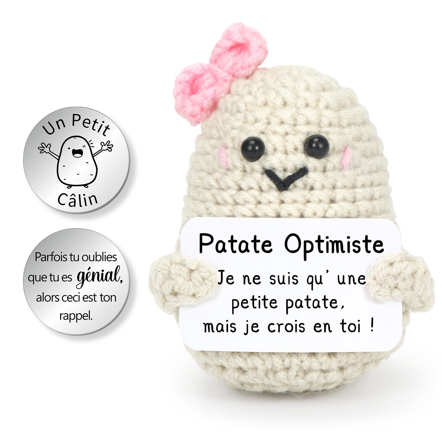 Cet ensemble de cochons porte-bonheur est parfait pour tous ceux qui ont besoin d'une dose de courage et de bonheur, que ce soit pour les enfants, les femmes, les amis ou toute personne qui peut utiliser un peu de bonheur. Matériaux de haute qualité : le cochon est fabriqué à partir d'un mélange minutieux de laine, de coton et d'acier inoxydable. En outre, l'ensemble comprend une pièce de monnaie pratique et brillante en acier inoxydable avec un cochon porte-bonheur et une inscription encourageante, un détail charmant qui symbolise la confiance et le courage. L'ensemble est joliment emballé et prêt à offrir, ce qui en fait un choix pratique et attrayant pour les donateurs de cadeaux qui veulent exprimer leur affection et leur soutien. Poupée Potato Porte-Bonheur OFYRA - Cadeau Baccalauréat Ou Examen Caractéristiques du produit : Produit : Potate positive cochon porte-bonheur avec porte-bonheur. Cet ensemble comprend un petit cochon câlin fait à la main et une carte de message inspirante, le compagnon idéal pour les examens, les adieux ou les souhaits de convalescence. Taille et emballage parfaits: avec les dimensions de 7 x 8 x 4 cm, le cochon se glisse dans n'importe quel sac et peut être facilement transporté partout. Description du produit Découvrez le cochon porte-bonheur Potato positif, un porte-bonheur unique qui apporte joie et réconfort dans les moments difficiles. Que ce soit comme cadeau pour un examen, comme cadeau de réconfort ou tout simplement pour se réconforter, cet ensemble réchauffera le cœur et favorisera les pensées positives. Ces matériaux garantissent non seulement la durabilité du jeu, mais aussi une sensation agréable dans la main. Cadeau de qualité supérieure - Fabriqué en laine douce et avec un sourire affectueux - Chaque exemplaire est une jolie pièce unique pleine d'énergie positive - 100 % mignon, 100 % positif, 100 % encourageant Emballage : contient un talisman de cochon porte-bonheur et une carte encourageante. à Imprimer Johiux Pocket Hug Pomme De Terre Positive, Porte-bonheur, Cadeau Pour Femme, Pomme De Terre Positive Amusante, Cadeau De Courage, Cadeau Pour Les Patate Positive Infirmière Uniquement ici : Ensemble complet pour la bonne humeur - cochon porte-bonheur crocheté à la main comprenant un porte-clés, 16 autocollants de motivation, un sac cadeau en coton et un ensemble de téléchargement exclusif Cadeau d'encouragement premium - Fabriqué en laine douce de haute qualité et avec un sourire affectueux - chaque pièce est une pièce unique et douce pleine d'énergie... Le cochon est accompagné d'une carte encourageante qui transmet des messages positifs et encouragera le destinataire. Il peut être apprécié aussi bien par les enfants que par les adultes et apporte un message positif qui aide tout le monde à se concentrer sur le bien. Fonctionnalités: Ce charmant ensemble se compose d'un cochon porte-bonheur conçu avec soin, fabriqué en laine fine et en coton. Couleur: rose Matériau : laine de haute qualité, coton et acier inoxydable Dimensions du produit : 7 x 8 x 4 cm Taille de la pièce : 30 x 30 mm, épaisseur 2,0 mm. Utilisation : Idéal comme cadeau d'adieu, compagnon d'examen ou de convalescence.