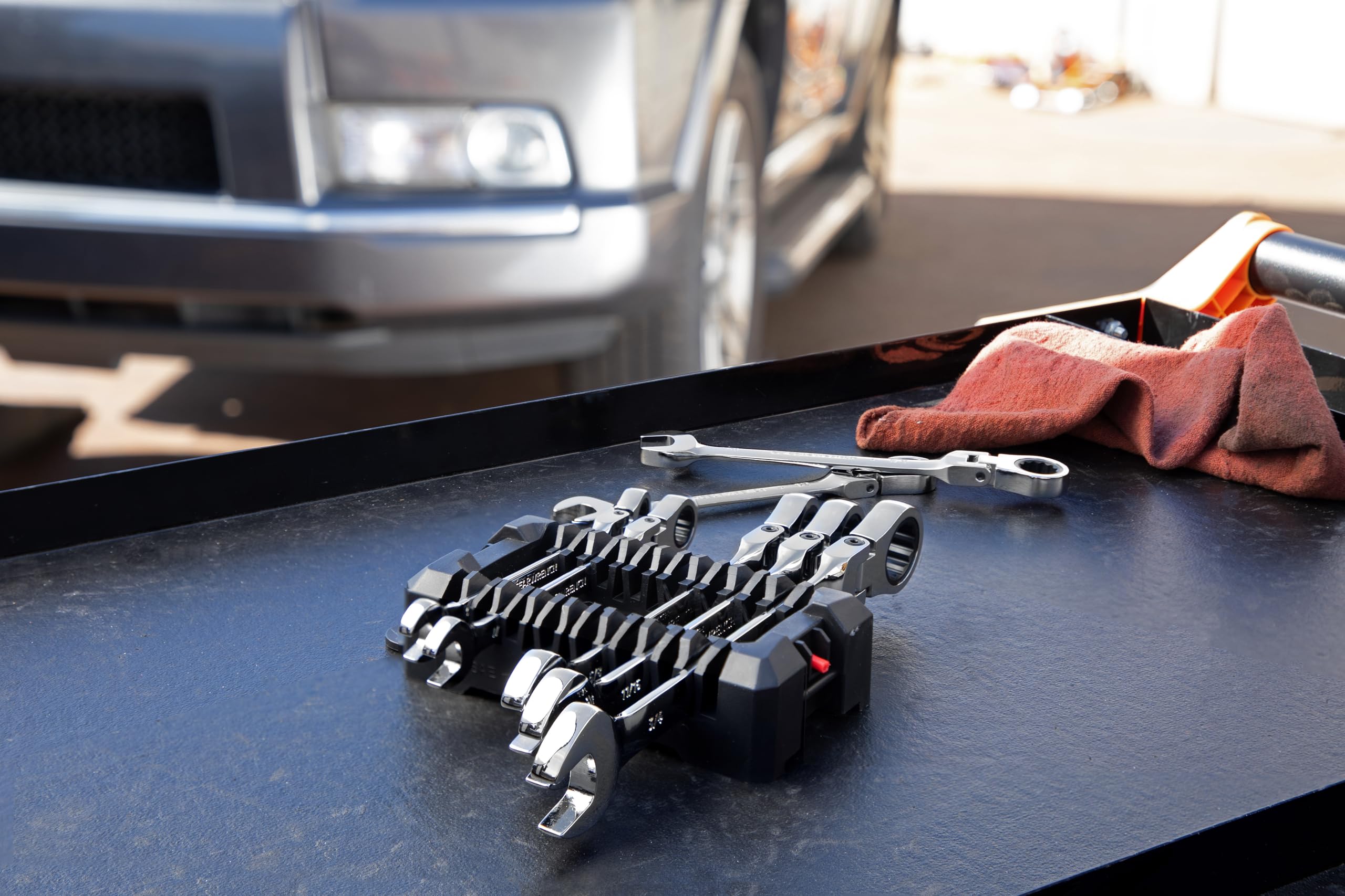 jeu de clé à tête flexible à cliquet métrique de 7 pièces · tête flexible de 180 degrés avec finition polie miroir · N'a besoin que de 5 degrés pour déplacer une... Les clés à cliquet combinées GEARWRENCH sont les premières clés à cliquet brevetées ! La tête de boîte à cliquet à 72 dents nécessite un minimum de 5° pour déplacer les fixations contre 30° pour les clés standard. Reversible Ratcheting Wrench Set 9900D GearWrench Juego De Llaves De Combinacion De Trinquete Flexible De 12 Puntos Metrico 7 Piezas Piece Flex Head Ratcheting Combination Wrench Set This 7-piece wrench set from GearWrench includes 3/8", 7/16", ½", 9/16", 5/8", 11/16" and ¾" flex head SAE combination ratcheting wrenches. La taille est commodément estampée sur les deux extrémités du faisceau pour une identification rapide. L'extrémité de la boîte à cliquet est conçue pour nécessiter seulement 5° pour déplacer les fixations contre 30° pour les clés standard. Les clés sont fabriquées en acier allié robuste avec une finition chromée brillante et entièrement polie 9900D | Jeu de clés Non 7 pièces en Acier chrome vanadium | RS La tête flexible permet d'accéder aux boulons et fixations difficiles à atteindre. Le design de chargement hors coin sur la tête de boîte offre une meilleure prise en main et réduit l'arrondi des fixations. This set of wrenches makes it quicker and easier to get the job done. La tête de boîte à cliquet présente un chargement hors coin pour une meilleure prise sur la fixation et réduit l'arrondi des fixations.
