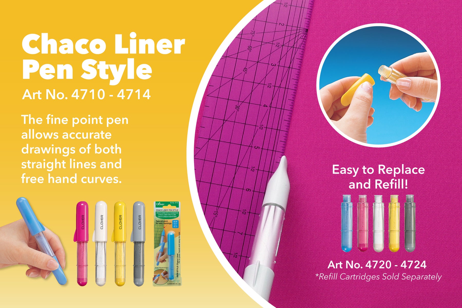 Bout en forme de roue, poudre de craie Permet un marquage précis pour les lignes droites et courbées à main levée , 2,5 g environ Chaco liner en forme de stylo - Argent - Clover. Permet de réaliser des lignes et des marques avec la poudre sur vos tissus et qui peuvent s'effacer facilement CLOVER - Marqueur De Trait En Forme De Stylo - Argent Chaco Liner ou stylo marqueur de traits avec poudre de craie diffusée par une roulette pour une glisse incomparable. Maniable avec une pointe aplatie pour suivre les lignes de gabarits, règles ou stencils avec précisions