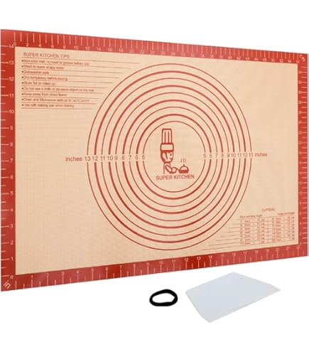 LE ROI DES MESURES: Vous ne savez jamais combien mesure vraiment votre pâte à p et en avez marre des approximations Munissez-vous du tapis de pâtisserie avec mesures Kitchen Craft pour avoir le compas dans l'œil Vous ne savez jamais combien mesure vraiment votre pâte à pizza et en avez marre des approximations? Munissez-vous du tapis de pâtisserie avec mesures Kitchen Craft pour avoir le compas dans l'œil. Peur que votre pâte reste collée? Aucun problème, son revêtement non-adhérent empêche les aliments de rester collés, et facilite le nettoyage rapide après utilisation. Papier Tapis De Cuisson De Qualité Alimentaire Antiadhésif Anti-Huile Tapis Patisserie Pour étaler La Pate KitchenCraft Sweetly Does It Tapis à Pâtisserie Pour Fondant Tapis A Patisserie UN REVÊTEMENT NON ADHÉRENT: Peur que votre pâte reste collée? Aucun problème, son revêtement non-adhérent empêche les aliments de rester collés, et facilite le nettoyage rapide après utilisation. INFORMATIONS UTILES: Ce tapis à pâtisserie de 61 x 45 cm est lavable à la main uniquement., Garantie 12 mois. POUR LES AMOUREUX DE PÂTISSERIE: Désormais, plus de à peu près en cuisine. - Lavable uniquement à la main., - Garantie 12 mois. Désormais, plus de à peu près en cuisine. Tapis de cuisson 45x60cm Tapis de cuisson en silicone Feuille de tapis... Grâce à ce tapis avec échelles et mesures, préparez vos meilleures pâtes à tarte, pizza ou quiche avec la taille exacte souhaitée.