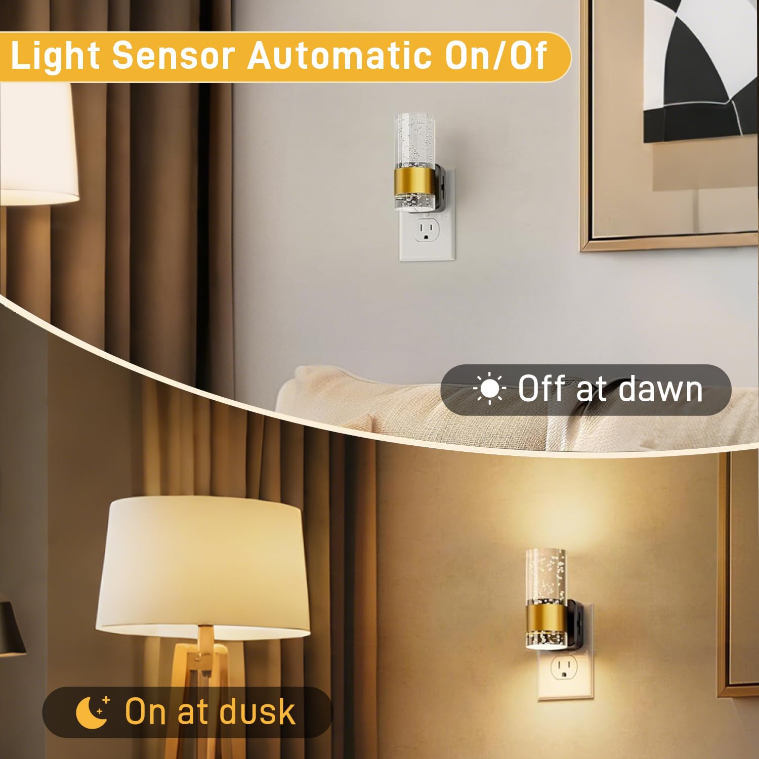 Lot de 2 veilleuses à 10 LED avec bande magnétique, détection Fonction du produit : La veilleuse à changement de couleur utilise la technologie d'induction de contrôle de la lumière pour émettre automatiquement une lumière douce lorsque la lumière ambiante s'assombrit, et s'éteint lorsque la lumière ambiante devient lumineuse. Mode d'emploi : Marche/arrêt automatique. Installation initiale, la veilleuse LED tournera pendant 15 secondes et fonctionnera sur le réglage sélectionné. Dawnrise Lot De 2 Veilleuses à 12 Couleurs Changeantes à Intensité variable : la luminosité des lumières changeantes de couleur est réglable, vous pouvez augmenter la luminosité en appuyant sur le grand « soleil », et réduire la luminosité en appuyant sur le petit « soleil » pour trouver la luminosité que vous souhaitez. 【Plug and Play, facile à utiliser】 : Plug and Play, pas de télécommande, pas de piles, et ne bloque pas l'autre prise. Capteur de lumière marche/arrêt automatique : fonction de détection de lumière, détection lorsque la lumière ambiante est faible, lumière automatique. Cette applique murale dispose également de deux modes de changement de couleur : changement progressif ou changement rapide. Sélection de la luminosité Sélectionnez soit le petit « soleil » à gauche du produit ou le plus grand « soleil » à droite du produit pour sélectionner la luminosité souhaitée. Avec 12 modes de couleurs vibrantes et une luminosité réglable, le Dawnrise Night Light transforme n'importe quel espace avec facilité et confort. Détails du... Elle est disponible en 12 couleurs RVB et lumière blanche, avec fonction de luminosité réglable pour des activités nocturnes pratiques sans perturber le repos normal.
