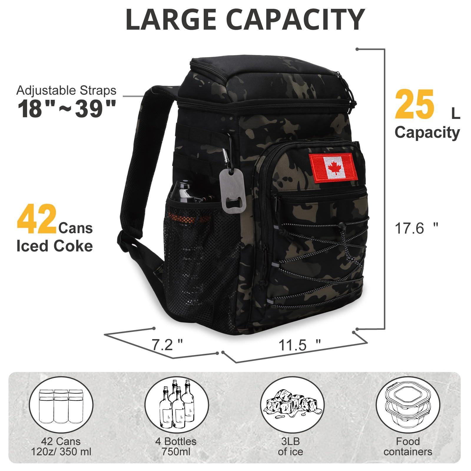 Gardez vos nécessités de plage ou de camping fraîches tout au long de la journée et idéal pour les occasions en plein air et l'aventure. Le compartiment principal étanche avec intérieur isolé garde vos aliments au chaud ou vos boissons au frais pendant des heures. La poche avant zippée est... Patchs uniques larges : bande Velcro pour fixer différents patchs si vous le souhaitez. ATRIPACK Sac à dos isotherme amélioré pour homme Quelle est la particularité du sac à dos isotherme ATRIPACK ? Couche isolante plus épaisse : la mousse isolée de 10 mm peut garder le froid/chaud jusqu'à 12 heures. Sac Isotherme Glacière Sac à Dos Tactique Isotherme De 25 L - Anti-fuite Sacs Isothermes 100 % étanche et imperméable : l'extérieur de ce sac à dos isotherme doux est fabriqué en tissu imperméable 900D robuste. 2 poches avant zippées pour vos clés, portefeuille. Achetez maintenant chez VEVOR. Un patch Velcro drapeau américain est inclus. Grande capacité de 25 l : transportez jusqu'à 42 canettes ou beaucoup de nourriture pour une excursion d'une journée et le travail. Sac à dos tactique résistant 25L avec système MOLLE 100 % étanche : fabriqué en 1 pièce et doublure PEVA sans recadrage pour garantir un effet étanche. Deux poches latérales en maille peuvent contenir vos bouteille d'eau ou de vin. Extérieur résistant à l'eau et durable : fabriqué en tissu Oxford 900D, durable et imperméable. 【Conservation à long terme】Le sac à dos isotherme imperméable ATRIPACK a été amélioré avec des tissus et des accessoires. Fabriqué en mousse isolée haute densité de 10 mm à l'intérieur, fabriqué en 4 couches de matériau isolant de haute qualité pour fournir une excellente conservation du froid/chaud jusqu'à 12 heures.