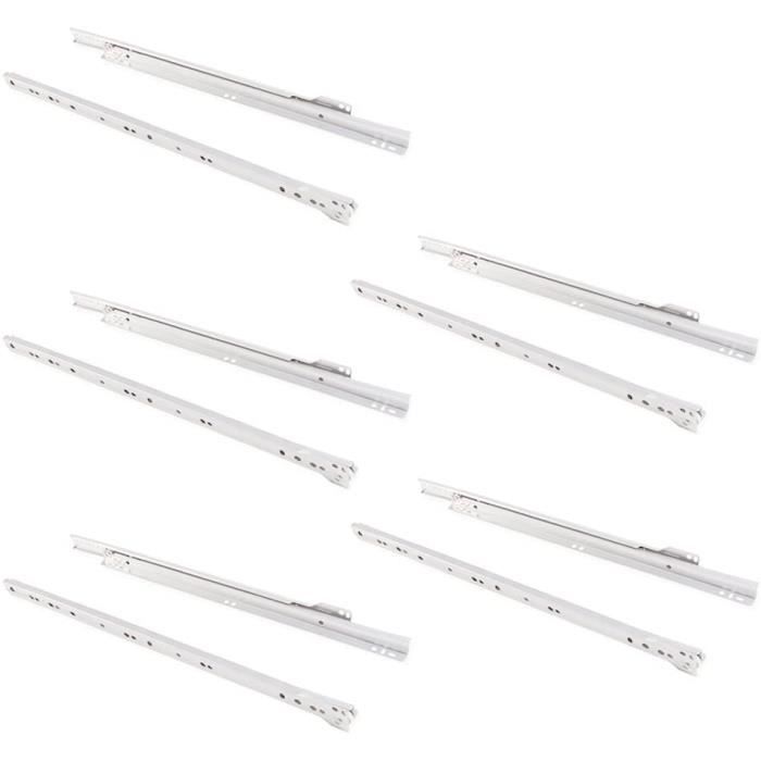 Coulisses à Billes pour Tiroir Bois à Sortie Partielle KA 270 pour Montage en Rainure 27 mm - 12... Vissez d'abord les glissières du tiroir sur la structure principale de l'armoire, puis fixez-les à la commode. Matériau solide : les glissières de tiroir partielles sont fabriquées en acier épais laminé à froid qui ne se déforme pas facilement, ce qui garantit résistance et stabilité pour les lourdes charges de tiroir. Glissière Pour Tiroirs MUNGHOK Lot De 4 Glissières De Tiroir, à Sortie Partielle, 182 X 17 Mm, Coulissantes Télescopiques, Glissières à Billes, Extension Complète, Coulisses Pour Système De Rail De Tiroir Rail Tiroir <br/Glisse uniforme : les doubles rangées de billes en acier massif dans le tiroir à rouleaux augmentent la stabilité des rails pendant le travail, de sorte que le tiroir peut être facilement ouvert et fermé et ne se coince pas facilement. Utilisation polyvalente : le rail télescopique convient à différentes tailles et types de tiroirs et permet une ouverture et une fermeture en douceur pour un accès facile aux objets. Paire de coulisses à galets 500 mm FR402 HETTICH Coulisses à billes KA 1730 - charge 10 kg - sortie partielle - Pour Poulie bidirectionnelle : la structure push-pull bidirectionnelle du guide à billes à extension complète résout le bruit causé par l'absence de rails lors de l'ouverture des tiroirs à double fente, ce qui rend les tiroirs plus silencieux lors de l'ouverture et de la fermeture. Détails : il y a 4 tiroirs argentés dans le paquet, chaque rail télescopique mesure 182 mm de long et 17 mm de large. <br/Poulie bidirectionnelle : la structure push-pull bidirectionnelle du guide à billes à extension complète résout le bruit causé par l'absence de rails lors de l'ouverture des tiroirs à double fente, ce qui rend les tiroirs plus silencieux lors de l'ouverture et de la fermeture. Ces rails télescopiques sont conçus pour une extension partielle qui permet un accès pratique au contenu du tiroir tout en offrant stabilité et maintien.